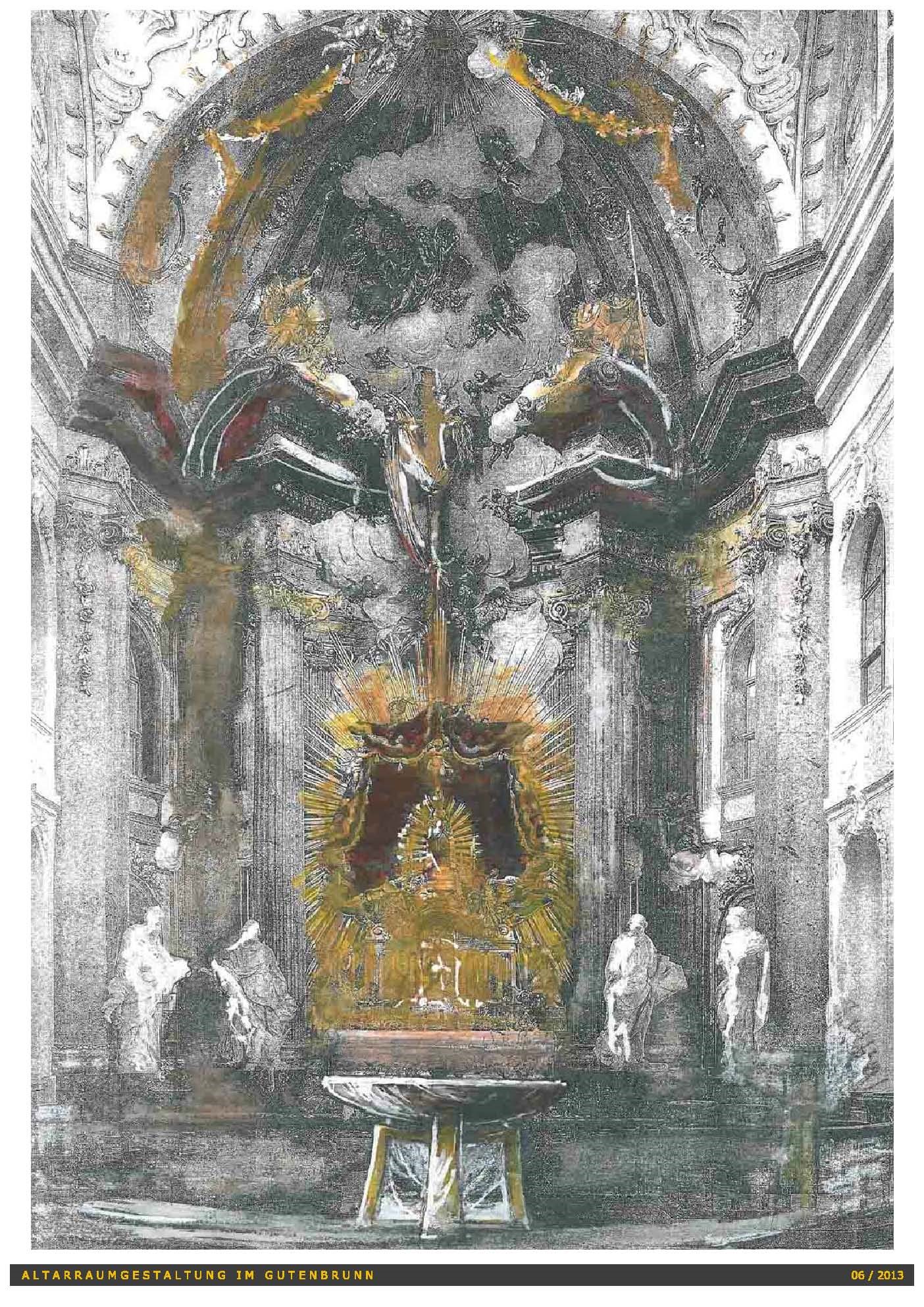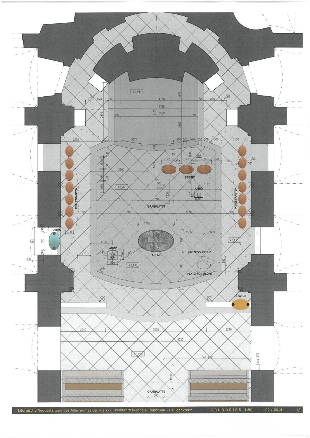 popiska – označení soutěžního – návrhu zněla: Liturgische Neugestaltung des Altarraumes der Pfarr- u. Wallfahrtskirche