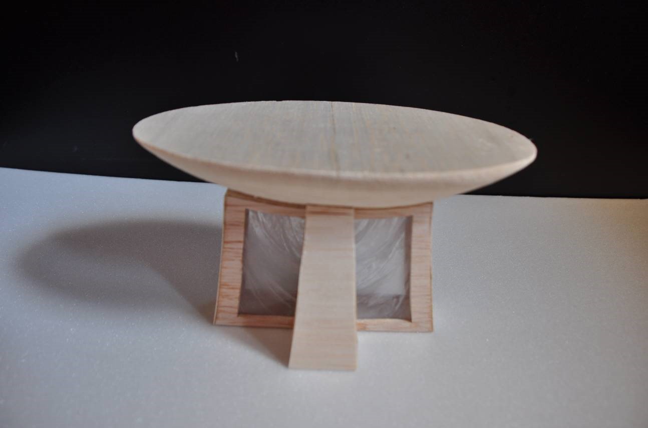 Abak je umístěn ve výklenku na stávajícím parapetu a je řešen skleněným oválem, tvarově korespondujícím s hlavním liturgickým vybavením.