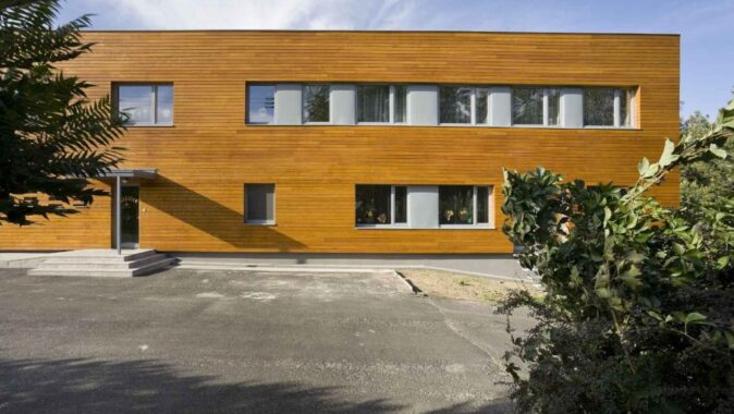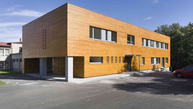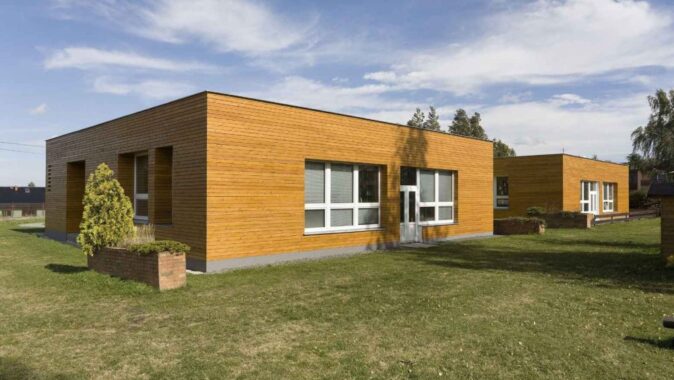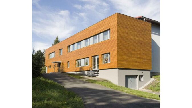 navrhli využití dřevěného provětrávaného obkladu. Dřevo je typickým materiálem
