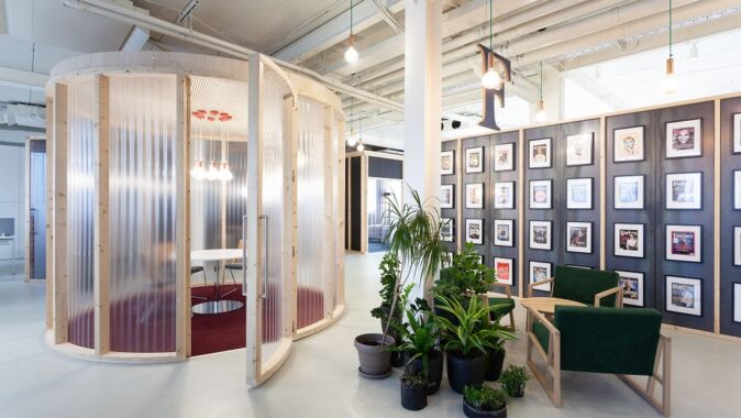 boxů, poskytujících soukromí pro schůzky, porady i telefonování.