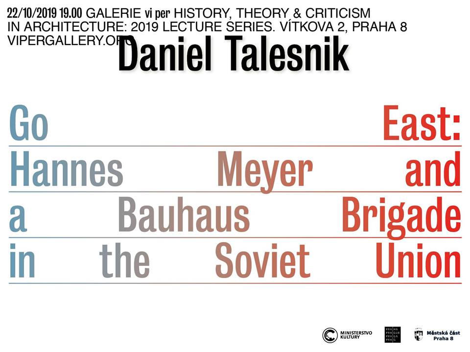 Krátce poté, co Hannese Meyera odvolali z jeho funkce na Bauhasu, napsal El Lisickému: „Jsem teď přesvědčený víc než kdy dřív, že v západní Evropě pro nás není vůbec nic na práci. Hrozící přízraky se rozdělily a dokonce i Paul Klee tvrdí, že by se měl vydat ‚západním‘, zatímco já ‚východním‘ směrem.“ Tak jako spousta historek z Bauhausu, i Meyerovo vyloučení je součástí mytologie. V přednášce se budeme zabývat obdobím, kdy Meyer působil na Bauhausu, a jeho následným přesunem do Moskvy na pozici stavebního experta první pětiletky. Léta strávená v Sovětském svazu jsou zajímavá nejen s ohledem na architektovu práci, ale také proto, že jeho projev a politické názory prošly v tomto období zásadní proměnou. Klíčový je i fakt, že Meyer mohl sebou do Moskvy přivést několik svých studentů, kteří společně vytvořili skupinu známou jako Rudá brigáda z Bauhasu. Přednáška se zaměří na to, proč se vydali s Meyerem na východ, na charakter jejich práce v SSSR, zda tu prakticky působila nějaká rozsáhlejší architektonická scéna z Bauhausu nebo odjinud ze zahraničí, a v neposlední řadě na to, co se stalo s Meyerem a jeho brigádou po jejich odchodu ze Sovětského svazu.