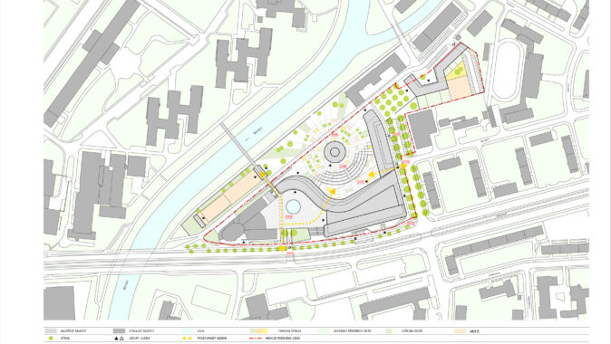 – připravovaný hlavní objekt univerzitního kampusu a úpravy veřejných prostranstvi zpracovala architektonická kancelář KNESL+KYNČL.
