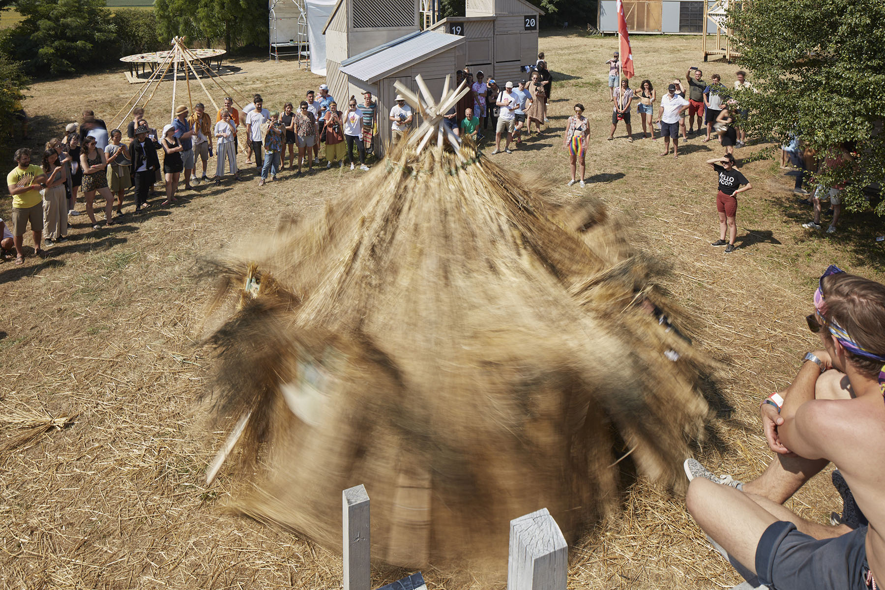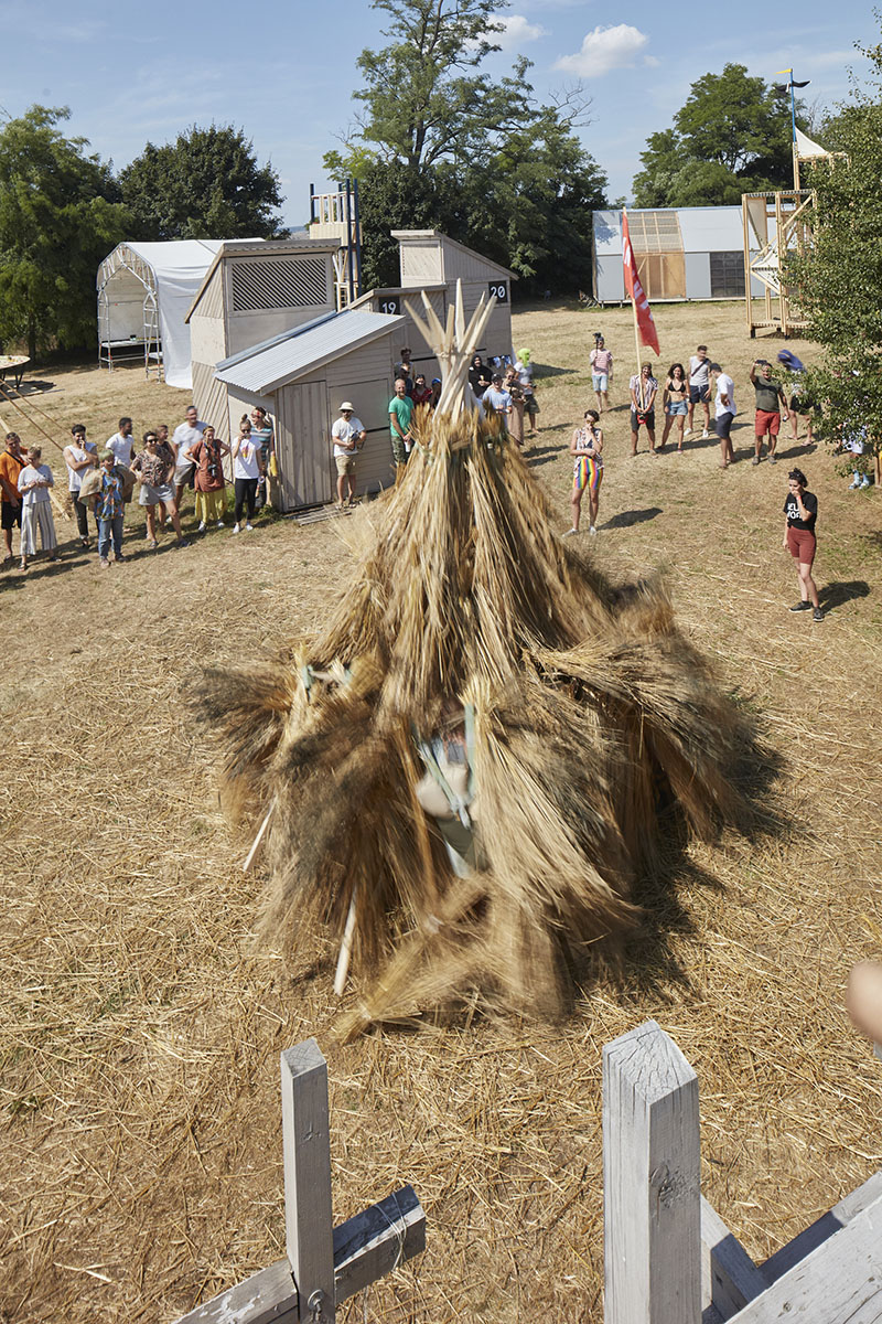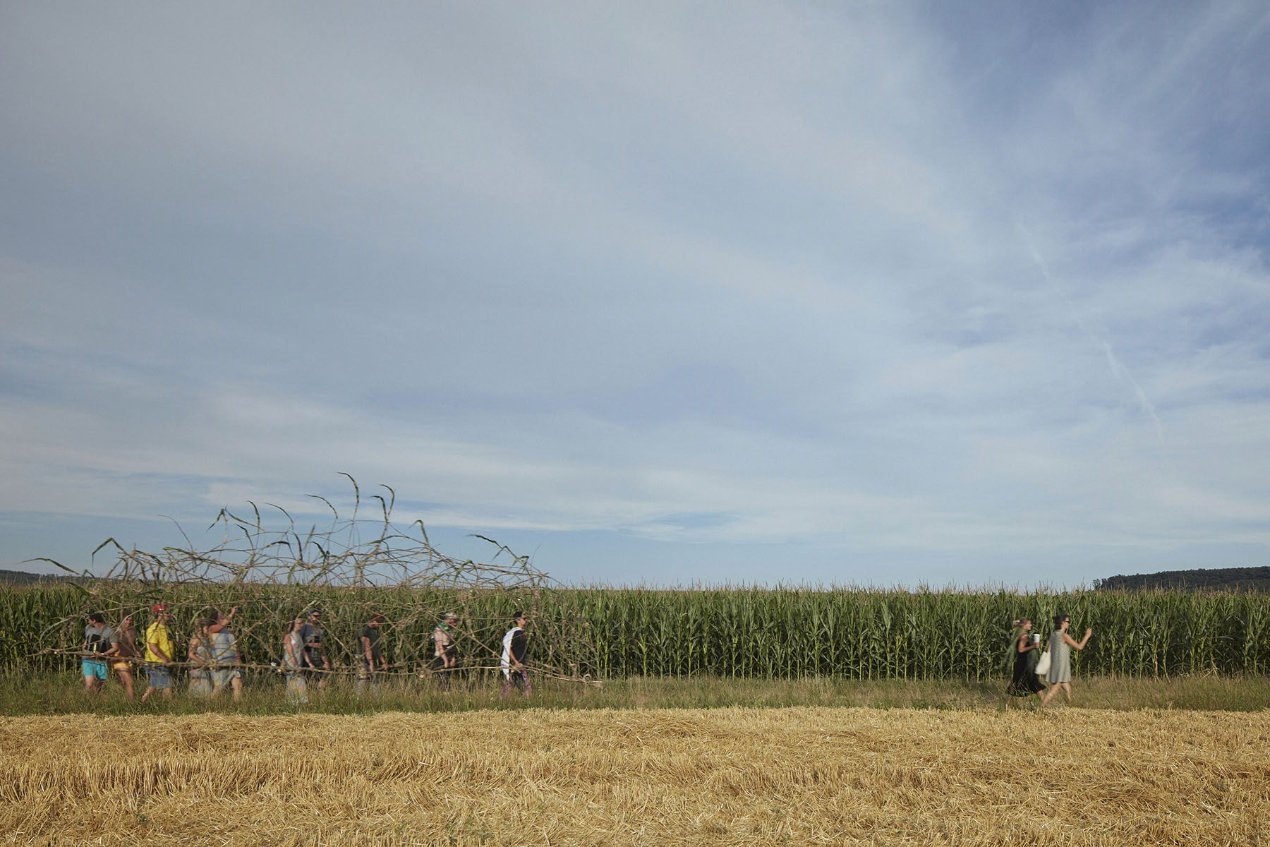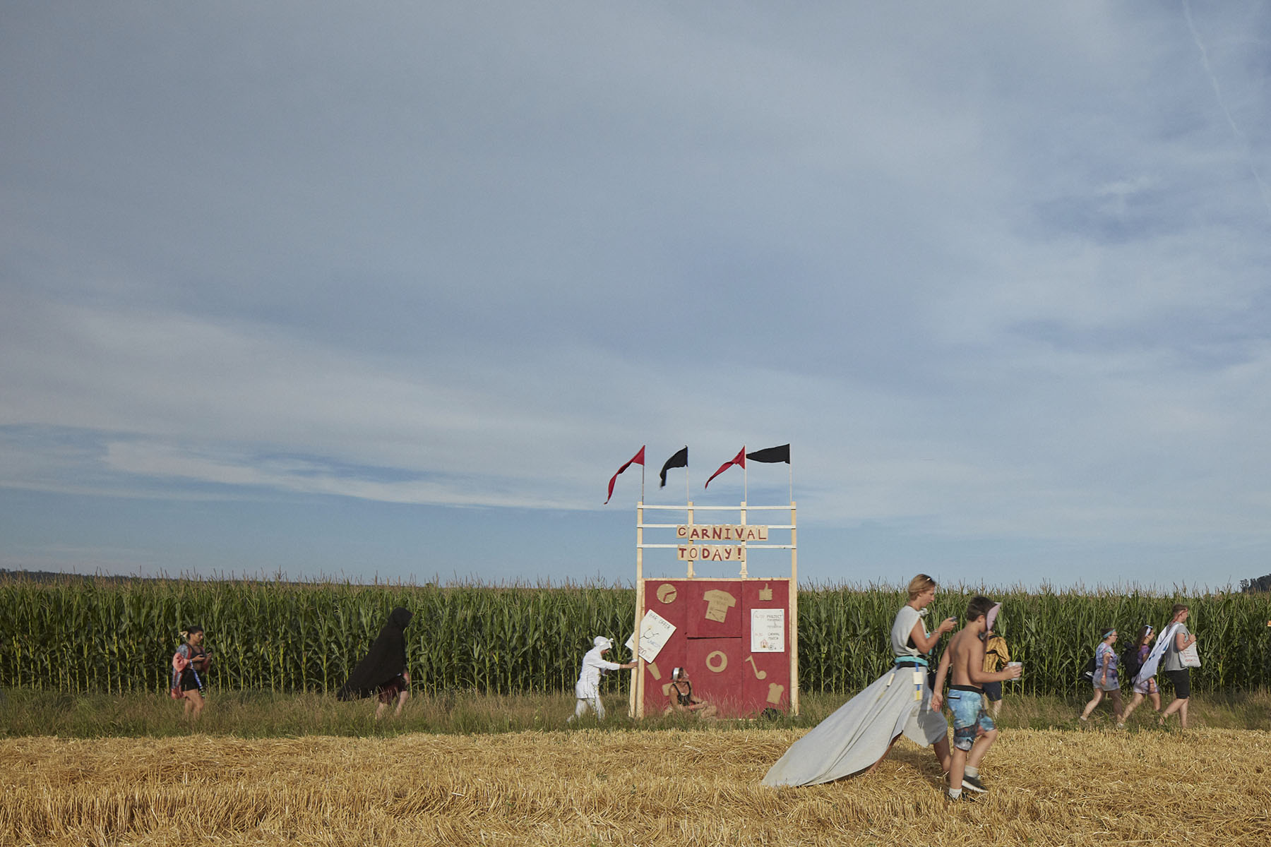 Průvod kráčející na horizontu zlatavého pole připomínal Tanec smrti z Bergmanovy Sedmé pečeti. V procesí byl zmrzlinový vůz s trůnem pro zmrzlináře jako alegorie požitku a radosti; zakletá princezna Sofie, která se po 2000 letech probudila z ledu, pravděpodobně důsledkem oteplování planety, a hledá svého ženicha (od Mjölk architekti); kabiny pro hříšníky; nomádská střecha pletená tradiční technikou slaměných střech, která na pohyby těch, kdo jí nesou, odpovídá vlastním tancem (WE MASK od Alžběta Brůhová a spol.), a mnoho dalších skvělých projektů. Objekty byly nechány ve vesnici, kde probíhal tradiční festival hudby a umění.
