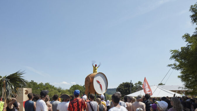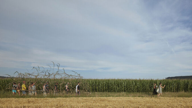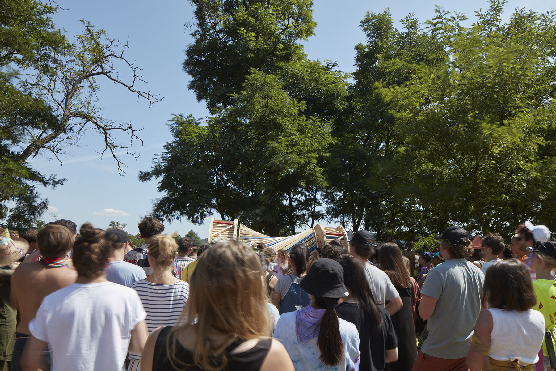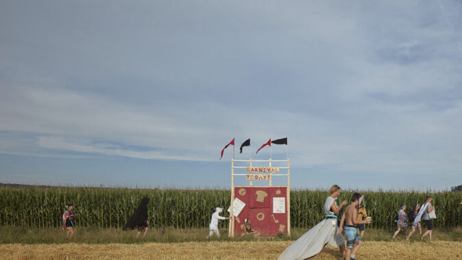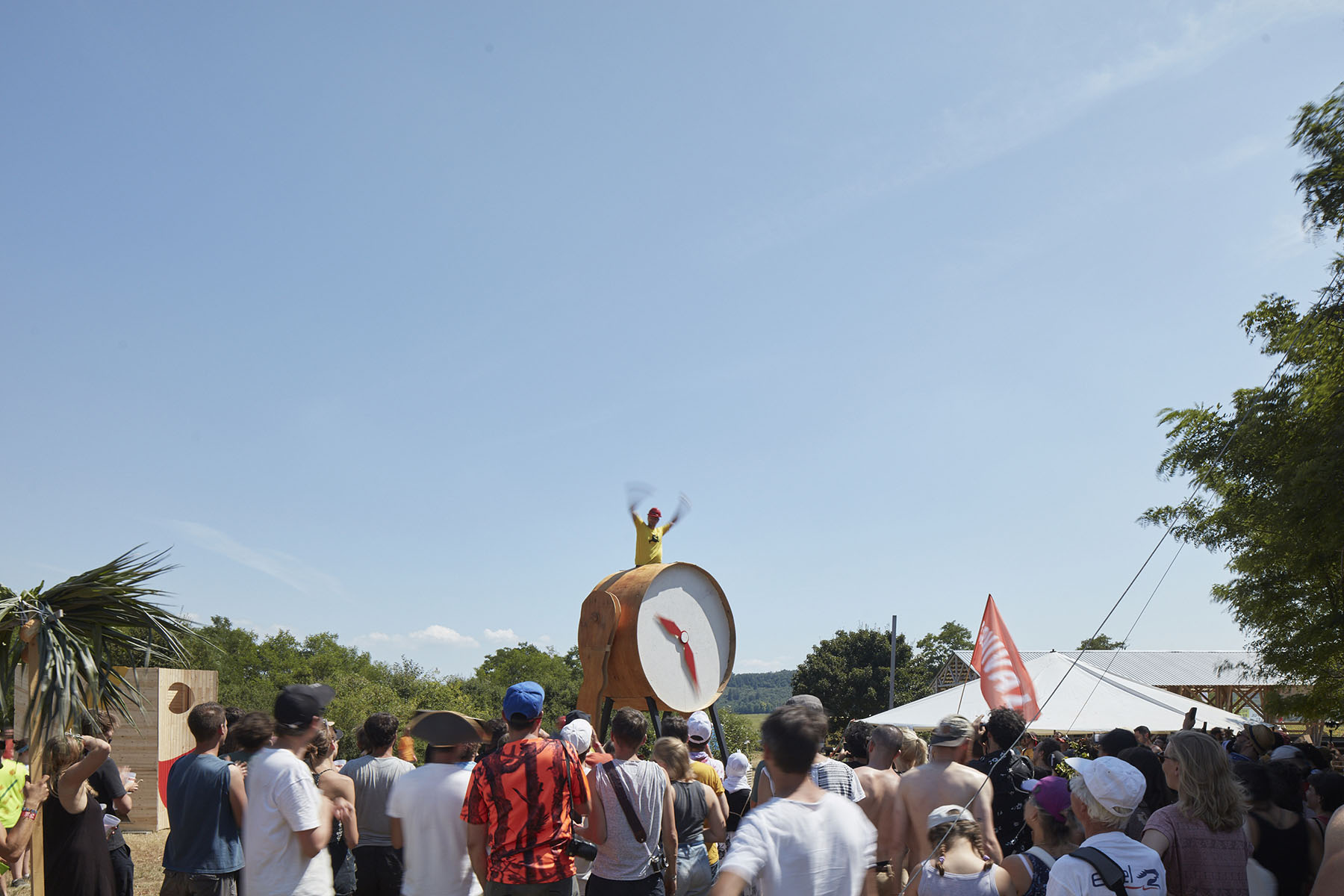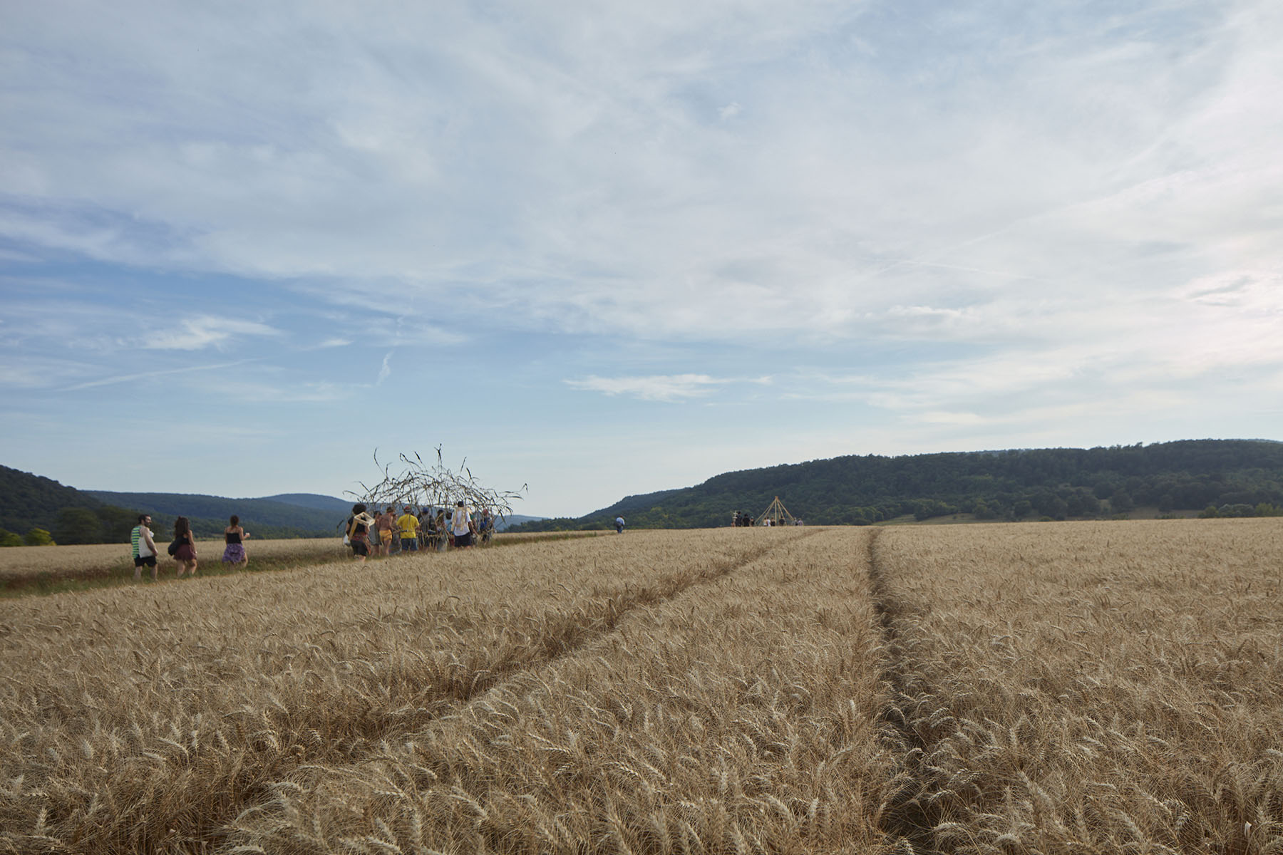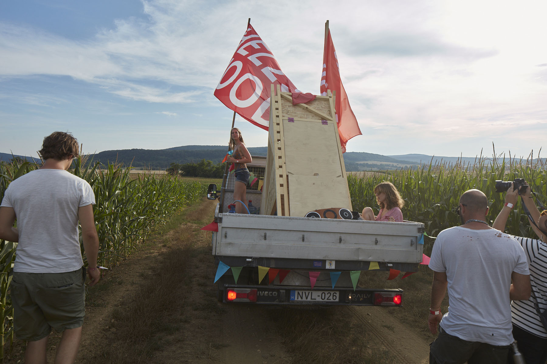 Průvod kráčející na horizontu zlatavého pole připomínal Tanec smrti z Bergmanovy Sedmé pečeti. V procesí byl zmrzlinový vůz s trůnem pro zmrzlináře jako alegorie požitku a radosti; zakletá princezna Sofie, která se po 2000 letech probudila z ledu, pravděpodobně důsledkem oteplování planety, a hledá svého ženicha (od Mjölk architekti); kabiny pro hříšníky; nomádská střecha pletená tradiční technikou slaměných střech, která na pohyby těch, kdo jí nesou, odpovídá vlastním tancem (WE MASK od Alžběta Brůhová a spol.), a mnoho dalších skvělých projektů. Objekty byly nechány ve vesnici, kde probíhal tradiční festival hudby a umění.