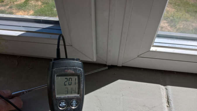 V průběhu stavby proto norma stanovuje metodu „B“, která se provádí v době, kdy je sice již obálka budovy dokončena, ale je stále možný přístup k této vzduchotěsné vrstvě. Tu je možné, v případě detekování netěsností, ještě opravit. Abychom kontrolní měření mohli vůbec provést, je nutné stavbu na testování připravit. Za použití dočasných těsnicích pásek a tmelů uzavřeme kanalizaci, kouřovody, vzduchotechniku, otvory TZB, zavřeme i okna. Měření samotné pak probíhá prakticky totožně jako měření konečné s tím rozdílem, že během něj se soustředíme na těsnosti zejména v místech návaznosti konstrukcí.