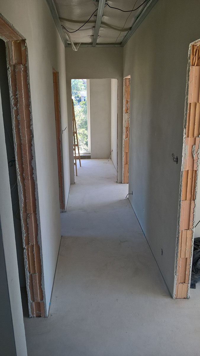 V případě zděného domu z cihelných bloků můžeme za vzduchotěsnou vrstvu pro splnění hodnot Blower door testu bezpečně považovat řádně omítnuté zdivo. Už v projekční části je třeba mít vyřešeno, kudy tato vrstva povede. Znamená to rovněž dodržet důsledné řemeslné zpracování této vrstvy, což přináší požadavek na jistou časovou, ale i precizní řemeslnou náročnost při řešení detailů styku navazujících konstrukcí. Řada těchto detailů je v systému HELUZ vyřešena a je samozřejmě stavebníkům k dispozici. Důležité je rovněž použít vhodné těsnicí pásky a tmely tam, kde vzduchotěsnou funkci vnitřní omítka plnit nebude.