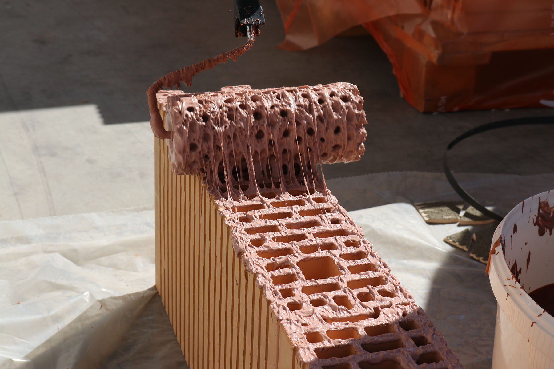 jako malování, prostě natíráte cihly válečkem a zdíte