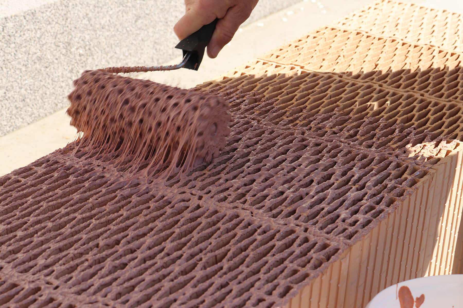 s maltou HELUZ SIDI, ponořit do ní molitanový váleček a mohu nanášet maltu