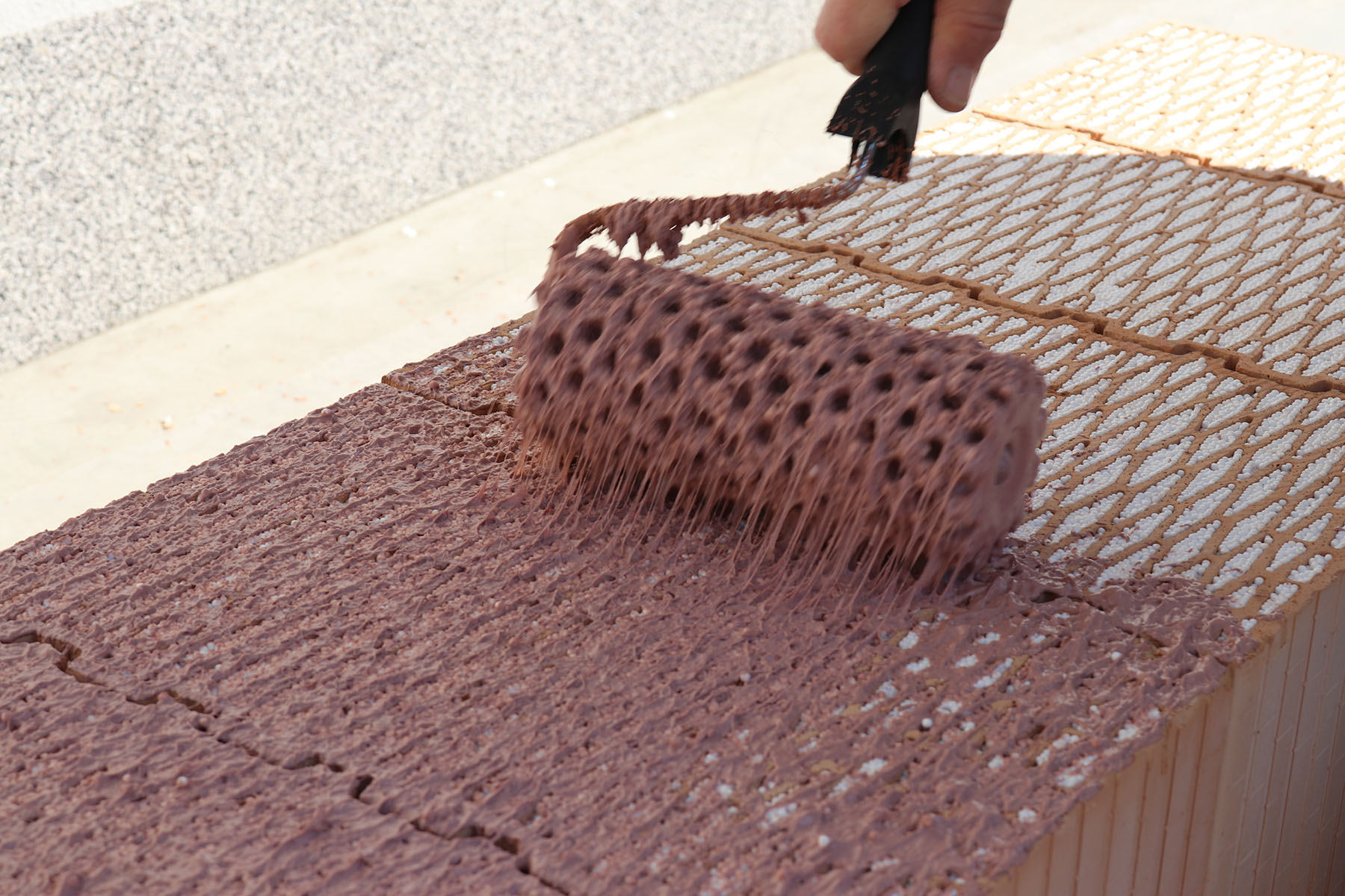 Vlastní nanášení se provádí molitanovým strukturovaným válečkem. Množství