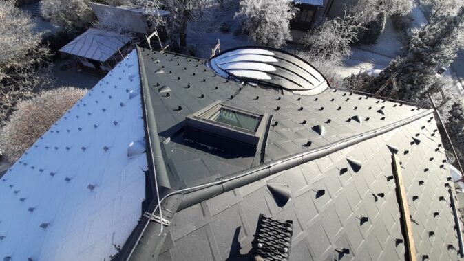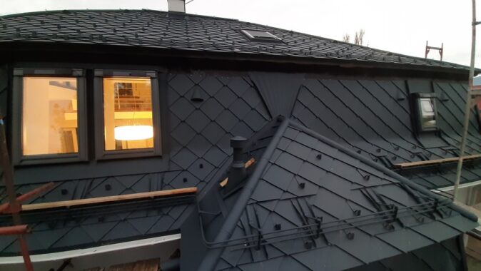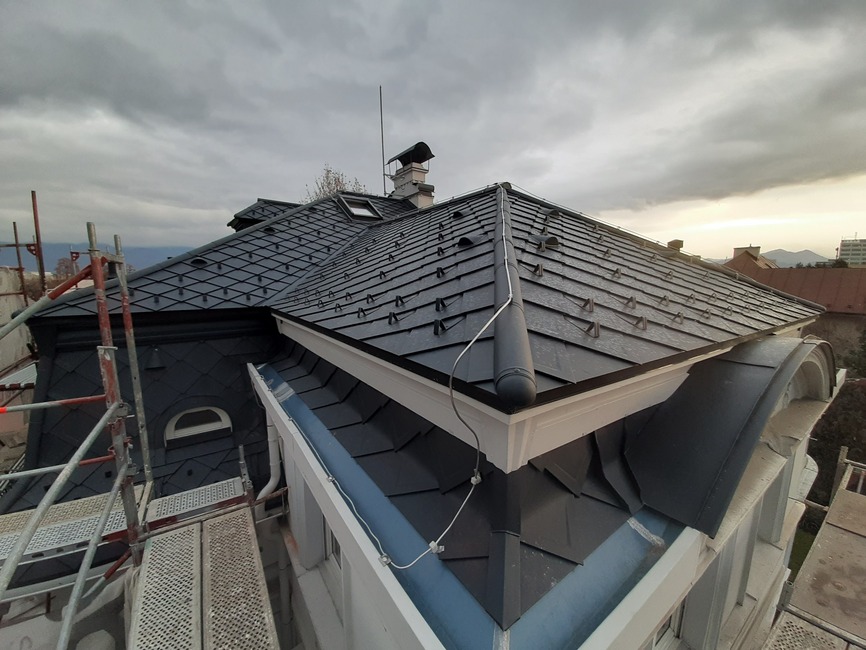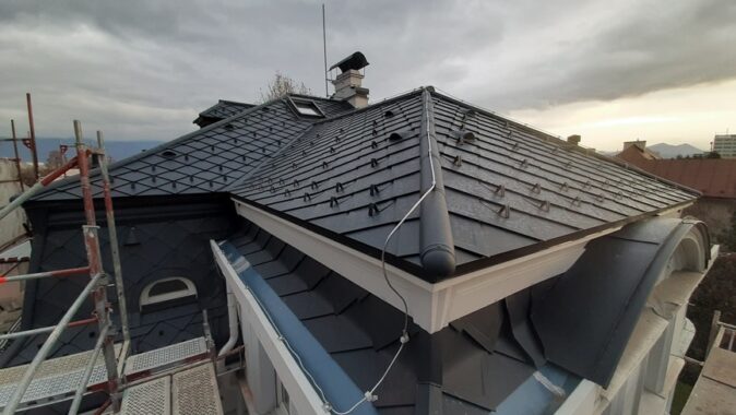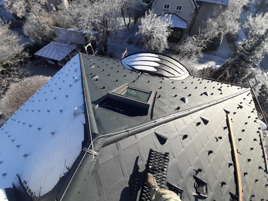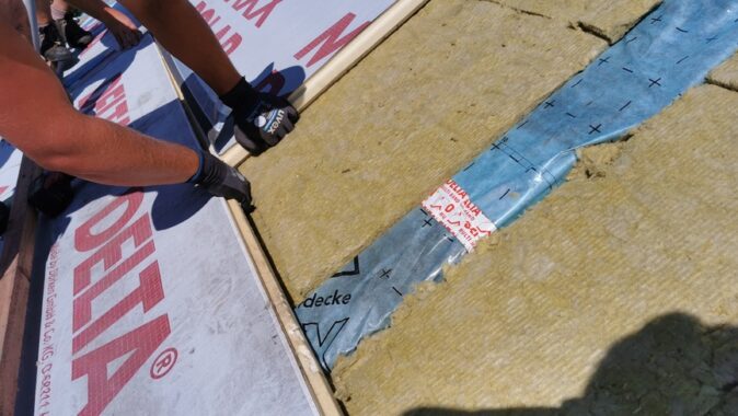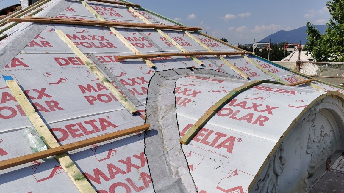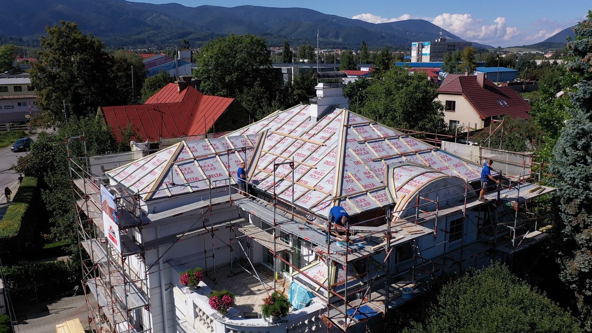 Z dôvodu nízkej hrúbky pôvodnej izolácie a zvýšenia komfortu bývania v podkroví v lete a v zime bolo nutné strechu dotepliť nadkrokvovou izoláciou – PIR doskami DELTA® MAXX POLAR z dôvodu (hrúbka…..) a zvýšenia komfortu užívania v zime a v lete.