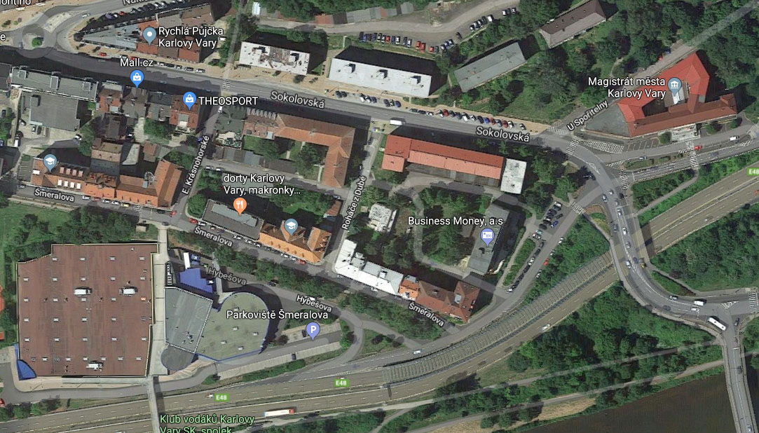mezi ulicemi Sokolovská, Hybešova, Šmeralova a Roháče z Dubé v Rybářích (tzv. “areál Elite”).
