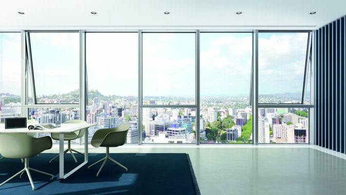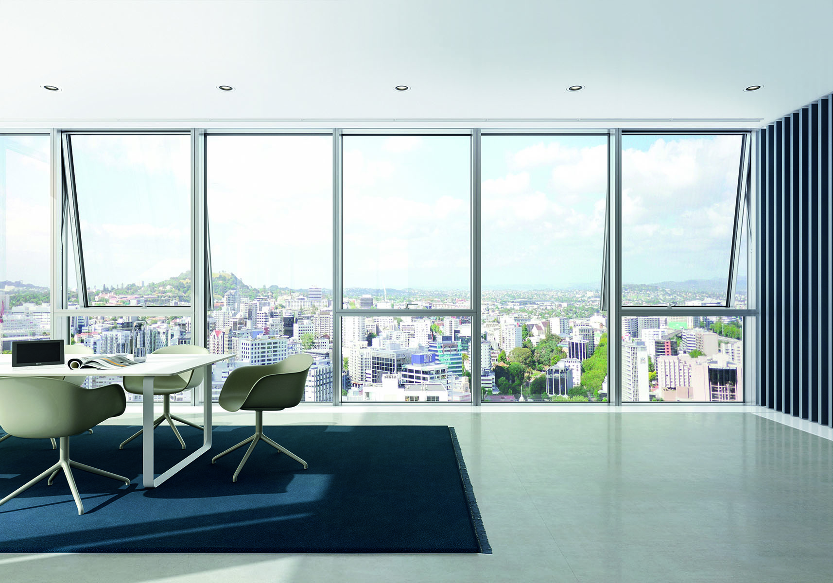 Hliníková fasáda Schüco UDC 80 CV má výklopná i posuvná křídla