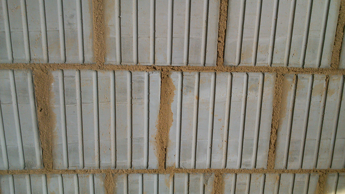 Zdivo z nepálených cihel – zdivo se pouze důkladně navlhčí.