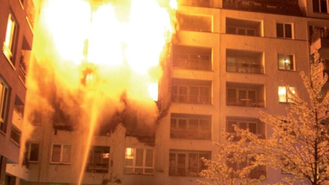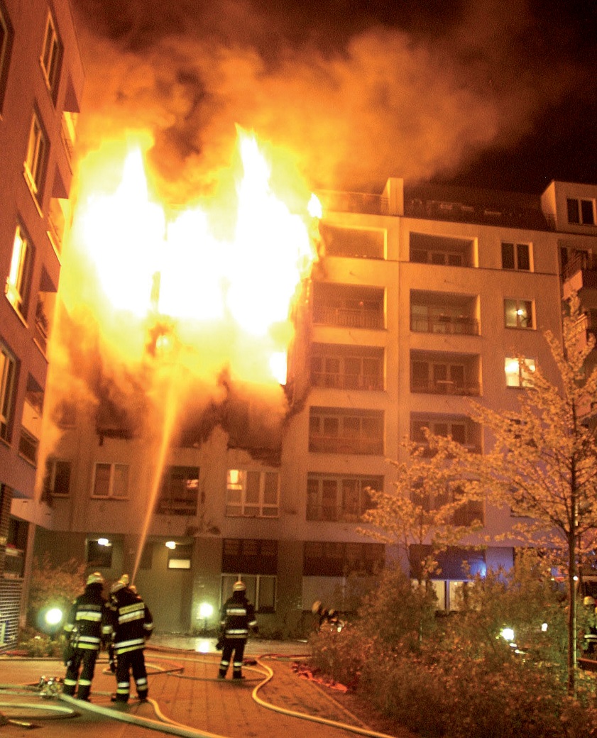Oheň se může rozšířit na fasádu zevnitř bytu
