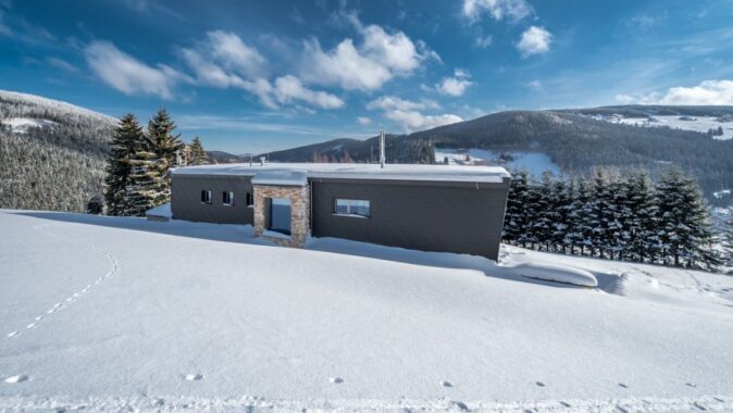 Dům s pultovou střechou stojí na místě chaty U