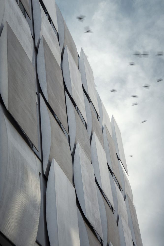 Uliční fronta je kompaktní, jasně členěná a její zásady jsou v návrhu dodrženy. Vysoký parter je obložen travertinem, typickým obkladovým kamenem pro centrum Prahy. Střední část symbolizuje hlavní funkci stavby. Je nejvýraznější a plastická jako pražské domy, ale za použití moderních členících a výrazových prvků.