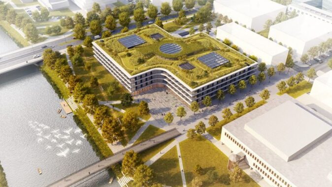 Nová administrativní budova banky ČSOB vzniká na nábřeží Labe a Gočárova okruhu, v lokalitě Aldis. Objekt bude poslední v řadě velkých budov na labském Eliščině nábřeží. ČSOB nechala zpracovat několik architektonických studií nové budovy a pro projekt nakonec vybrala návrh architektonického ateliéru Projektil architekti. V rámci výstavby banka také spolupracuje s městem Hradec Králové na vytvoření koncepce veřejného prostranství celé lokality Aldis. Spolu s výstavbou bankovní budovy musí vyrůst také nová lávka přes Labe, která je s tímto projektem smluvně provázána a která navazuje na pěší bulvár postavený již v roce 2003.