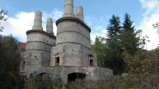 krajině již osamělé sladovny, rozpadlé vápenky, zbytky konstrukcí u zaniklých