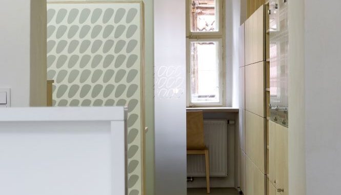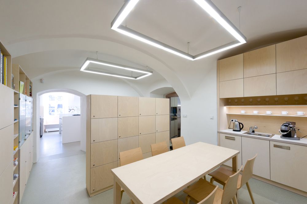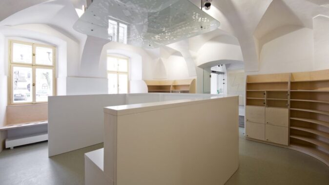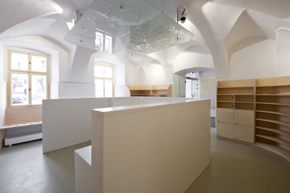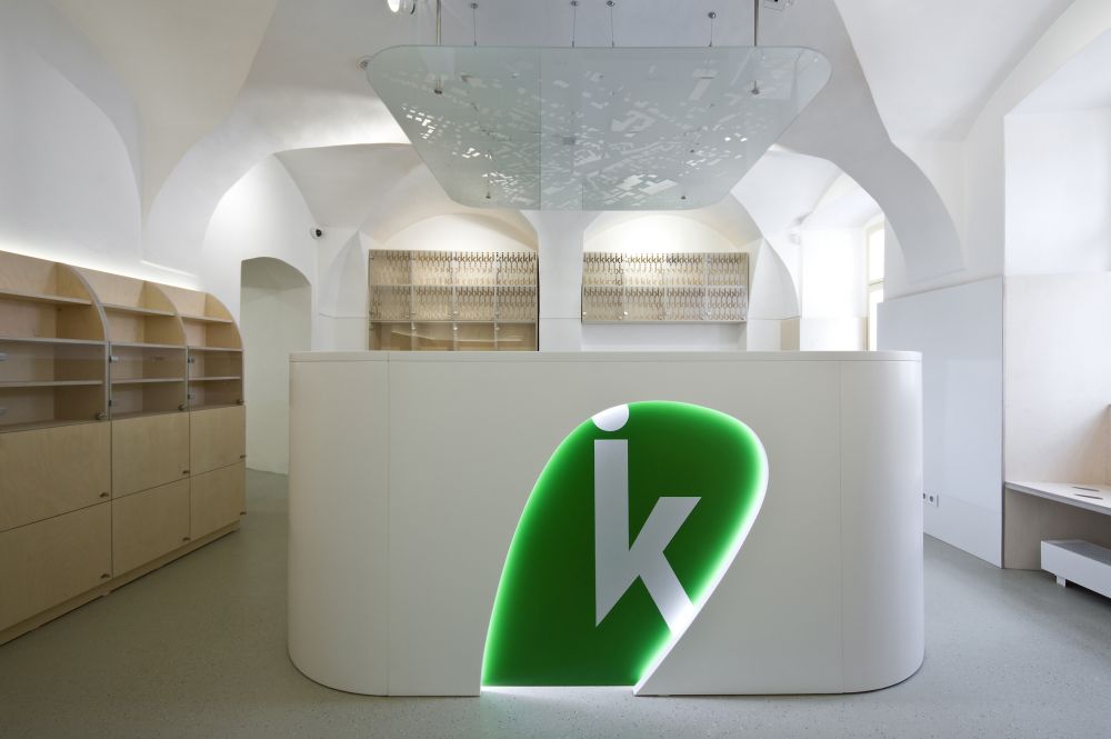 Samotný prostor v budově určený pro informační centrum je členitý a málo osvětlený. Vzhledem k rozsahu nabízených služeb je i poměrně malý, spíše nedostačující. Naše řešení vycházelo z daných možností prostoru. Největším zásahem bylo otevření – znovu vybourání otvoru mezi internetovou kavárnou a prostorem pro turisty. Je tak možné projít informačním centrem dokola a nevracet se stejnou cestou. Začleněním původní chodby do využívaných místností se prostor o něco zvětšil.