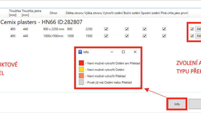 V případě, že dojde k modifikaci stavebního otvoru – např. posun či změna jeho velikosti, pak klikem tlačítka „Aktualizovat“ plugin znovu projde všechny prvky v projektu a zaktualizuje všechny potřebné prvky. Aktualizace projektu neprobíhá neustále, ale je třeba ji tiskem tlačítka vyžádat.