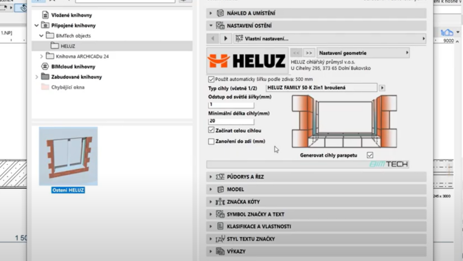 Jedním z řešení, jak tento proces kolem detailu stavebního otvoru zefektivnit, je ve využití „BIM softwaru“ a pluginu HELUZ. Díky němu je možné: