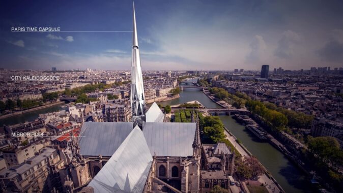 Součástí nové konstrukce by měla být časová kapsule ve tvaru špičky věže, která se má otevírat každých 50 let, aby se do ní uložily artefakty probíhající doby. Má se tak propojit minulost se současností s přesahem do budoucnosti. Speciální kapsule bude upevněná pomocí magnetu a pohyby nahoru a dolů by v podstatě levitovala a navozovat dojem tlukotu srdce. Nová katedrála Notre-Dame by tak měla působit jako opravdové tepající srdce francouzské metropole, potažmo celé Francie.