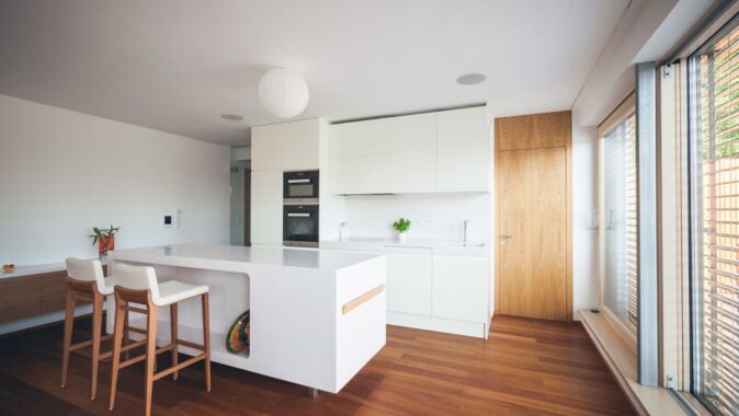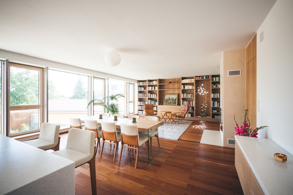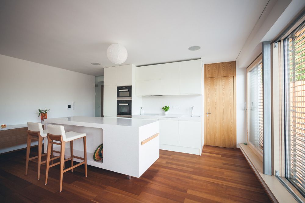 Interiér byl „ušit na míru“ klientům, kteří upřednostňují světlé barvy a otevřený klidný prostor. Původní venkovský dům byl přestavěn na dvougenerační, nízkoenergetický, s větráním s rekuperací tepla.