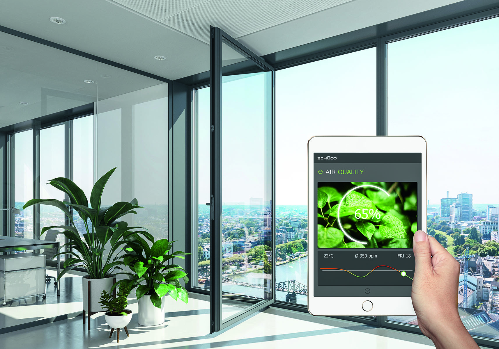 jednotka Schüco detekuje například, kdy je úroveň vlhkosti v budově příliš
