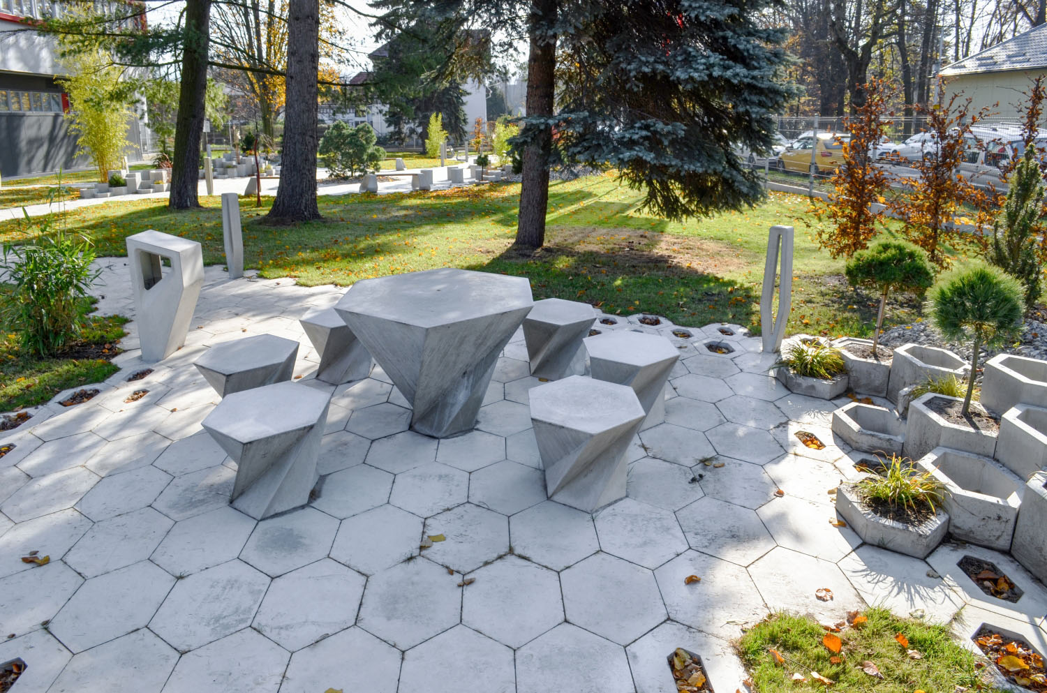 patří i geometrické posezení z řady H-E-X. které je možné doplnit i květináči
