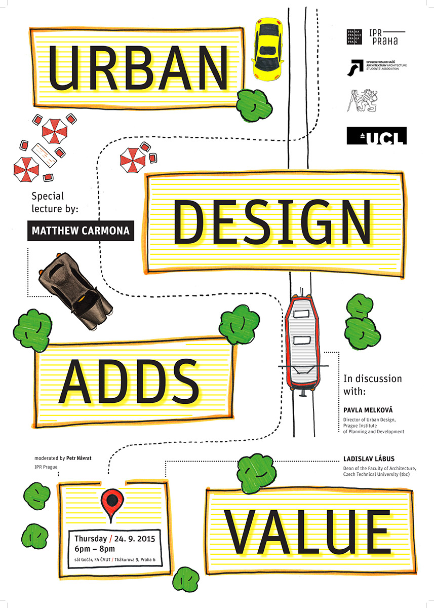 „Kvalitní veřejná prostranství zvyšují ekonomickou a společenskou hodnotu svého okolí.“ Tak zní myšlenka, kterou popularizuje profesor Matthew Carmona, jeden z nejvýraznějších akademiků současnosti zabývajících se  městským plánováním. O tom, jak může kvalitní design ulic a náměstí ovlivnit prosperitu města či přispět k jeho ekologické udržitelnosti, bude Carmona mluvit v přednášce „Urban design adds value“ na pražském ČVUT ve čtvrtek 24. září od 18.00 hodin.