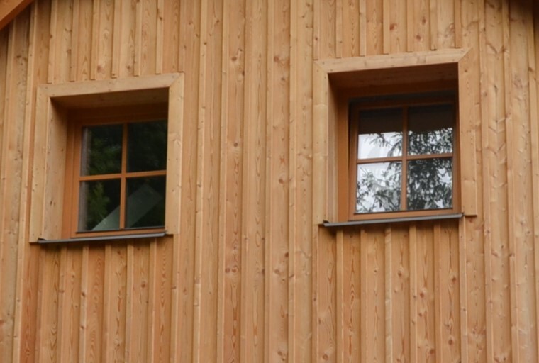 Dřevěné obklady, zejména štítů jsou zvláště oblíbené zejména v podhorských a horských oblastech (foto 5). Pro docílení správné funkce odvětrání vodních par se první rošt (připevňovaný k nosné stěně) ukládá ve vodorovném směru. Pokud je požadován svislý obklad, použije se křížový rošt, aby byla zaručena správná funkce odvětrání. Rošt, na který se upevňuje vnější obklad, musí být impregnován proti dřevokaznému hmyzu a hnilobě.