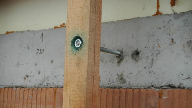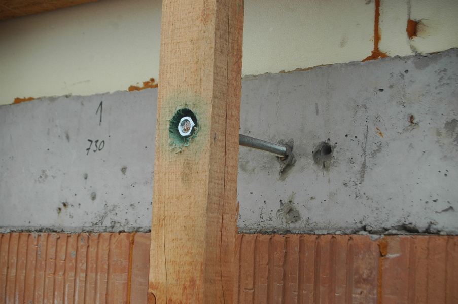 • kotvení pomocí speciálních kotev Spirall Anksys® a expanzní výplňové hmoty SAF1 nebo SAF3. To je speciálně vytvořený produkt pro kotvení dřevěných nosných roštů v děrovaných blocích HELUZ. Pro přípravu otvoru této kotvy, se nemusí vrtat bez příklepu.