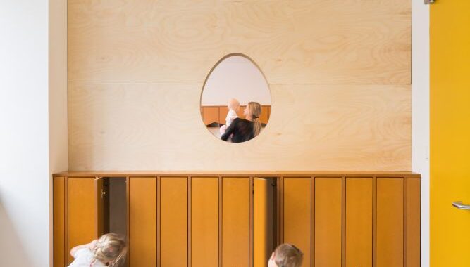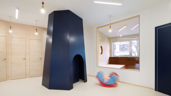 Malvína ráda pořádek – pusu a hurá do hry. Eda si to chvíli rozmýšlí, ale souhlasí. Jenže ti rodiče. Loučení těžce nesou. A když budou máma s tátou vystresovaní, Malvína a Eda mají o ně pak zbytečnou starost. Přidali jsme tedy mávací okénka, kde se dá z náručí tety ještě jednou rozloučit a propouštění maminky je kapku jednodušší. Navíc lze snadno nahlížet do ložničky i herny, aby se tátové mohli ještě dlouho ujišťovat, že je jejich poklady nestrádají. Babičkám a dědečkům, kteří se nemohou ohýbat, jsme připravili schůdky, na kterých děti snadno obléknou. Pro povyražení tatínků je v šatně připraven i vysoký přebalovací pult. Malvíně a Edovi prý vyklidněný dospělý doprovod pomůže, ale nestačí. Čekají víc.