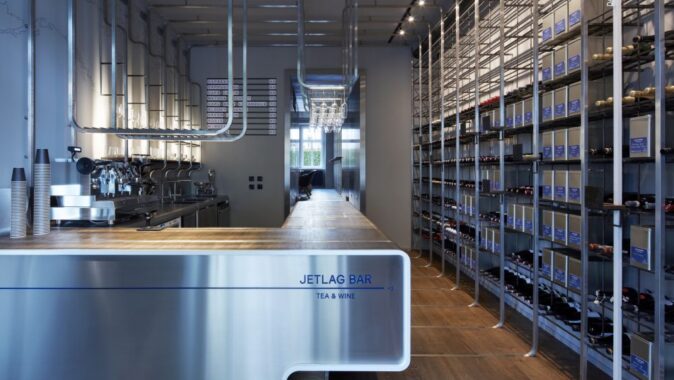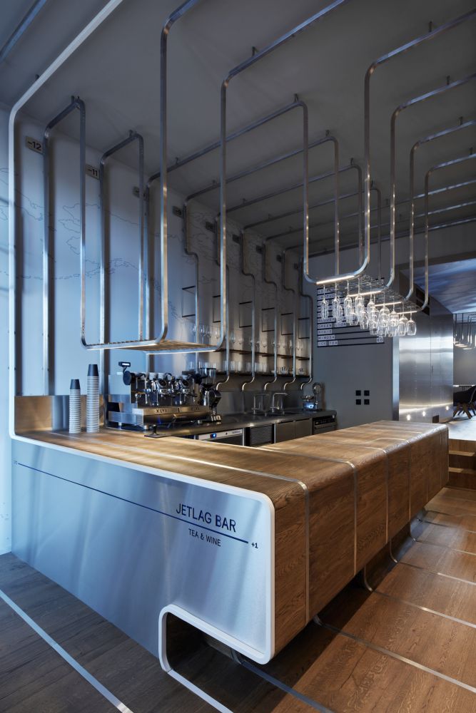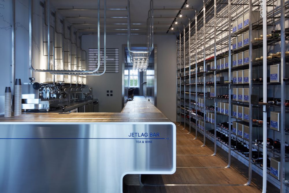 Malý bar v centru Prahy nabízí především čaj a víno, ale i dobrou kávu. Samostatně i v překvapivých mixech. Od názvu Jetlag je odvozen prostorový koncept „cestování“ mezi časovými pásmy. Na necelých patnácti metrech délky je tak možné „proletět“ celý svět.