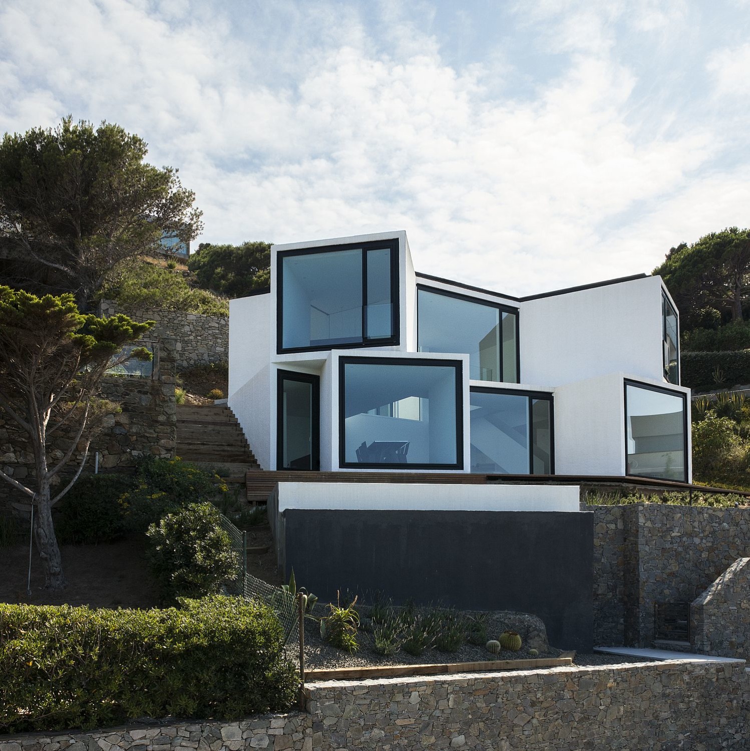 stojící na španělské Costa Bravě. Pozemek na kamenném srázu je často