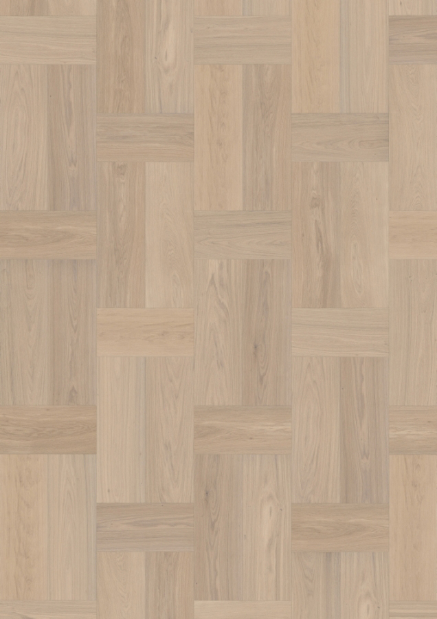 Modulární princip vychází ze vzájemné kombinovatelnosti jednotlivých formátů i dekorů. Skládat tradiční i velmi originální a individuální vzory umožňuje spojovací systém s vyjímatelným perem na dvou stranách každé lamely. Dílce jsou 1lamelové s přiznanou kresbou dřeviny dub včetně přírodou zakreslených nepravidelností a suků. Povrch mají kartáčovaný, chráněný přírodním olejem Kährs. Nápaditou strukturu dekorů v ploše pak jemně zvýrazňují i zkosené hrany jednotlivých modulů.