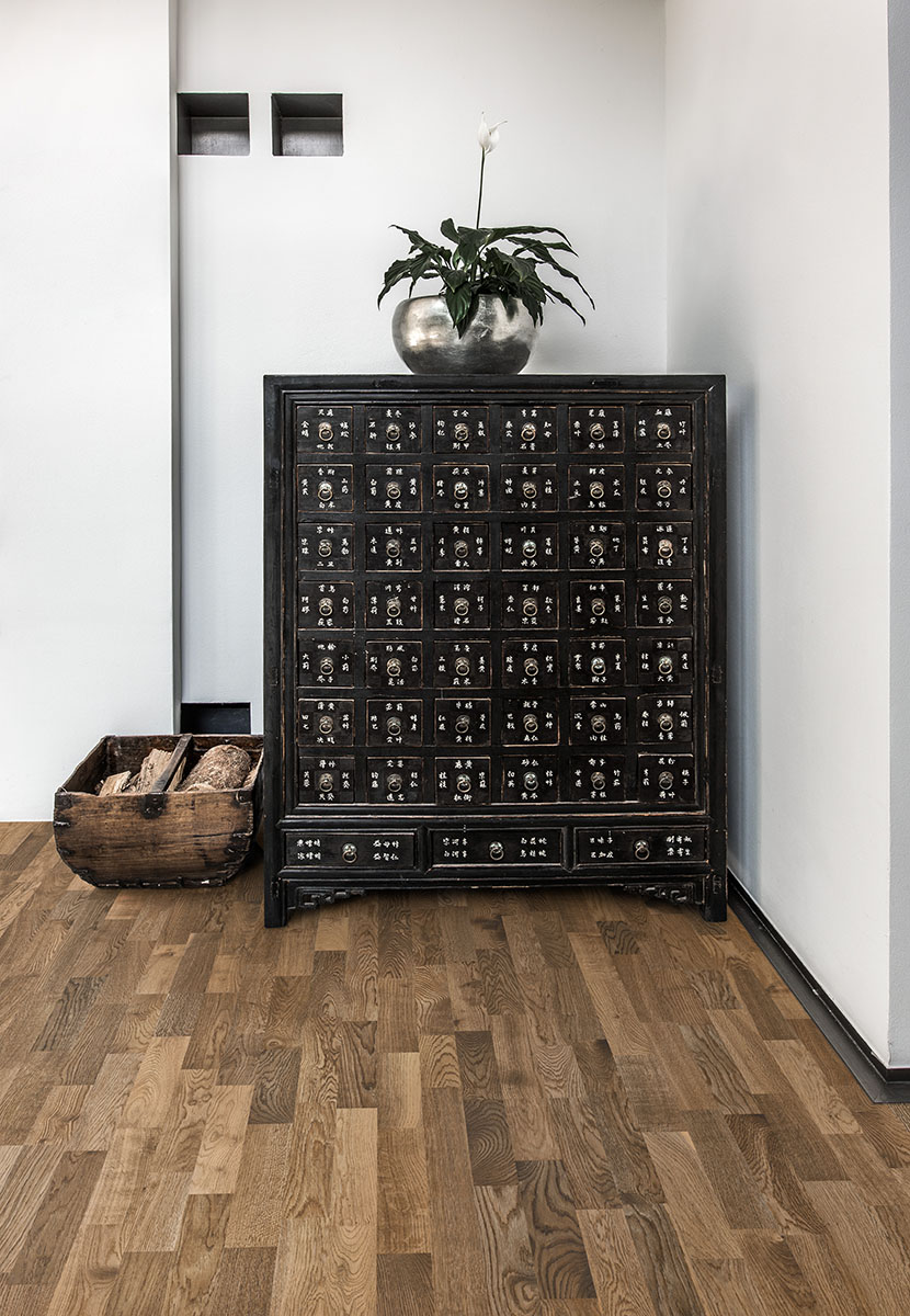 Obě kolekce jsou dostupné od mléčně bílých tónů až po kouřové a tmavě hnědé odstíny, z hlediska struktury to nejsou úplně čisté dekory, spíše střední proud. Jedno lamelová kolekce Lux sestává z osmi dubových a dvou jasanových dekorů. Všechny podlahy této kolekce se vyznačují mikrozkosenými hranami, které zdůrazňují jednotlivé lamely, a jsou kartáčované, což je technika, kdy jsou měkké části dřeva mezi tvrdými letokruhy vykartáčovány, čímž se struktura dřeva v podlaze zvýrazní. Krytiny ze vzácného, téměř nedostatkového jasanového dřeva patří díky bílému moření k těm nejsvětlejším v rámci kolekce Lux.