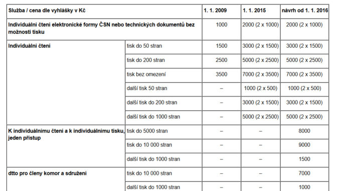 Od roku 2009 funguje placený elektronický přístup k technickým normám. „Tehdy byly ceny nastaveny relativně rozumně. (1000 Kč za rok – pozn. red.).