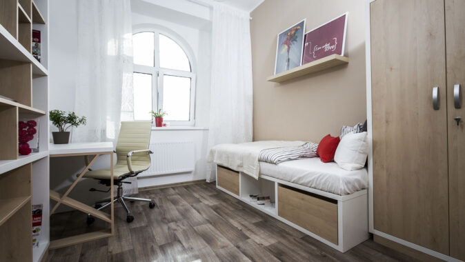 původní zdobné prvky a uvnitř poskytuje moderní zázemí studentům, které nejen