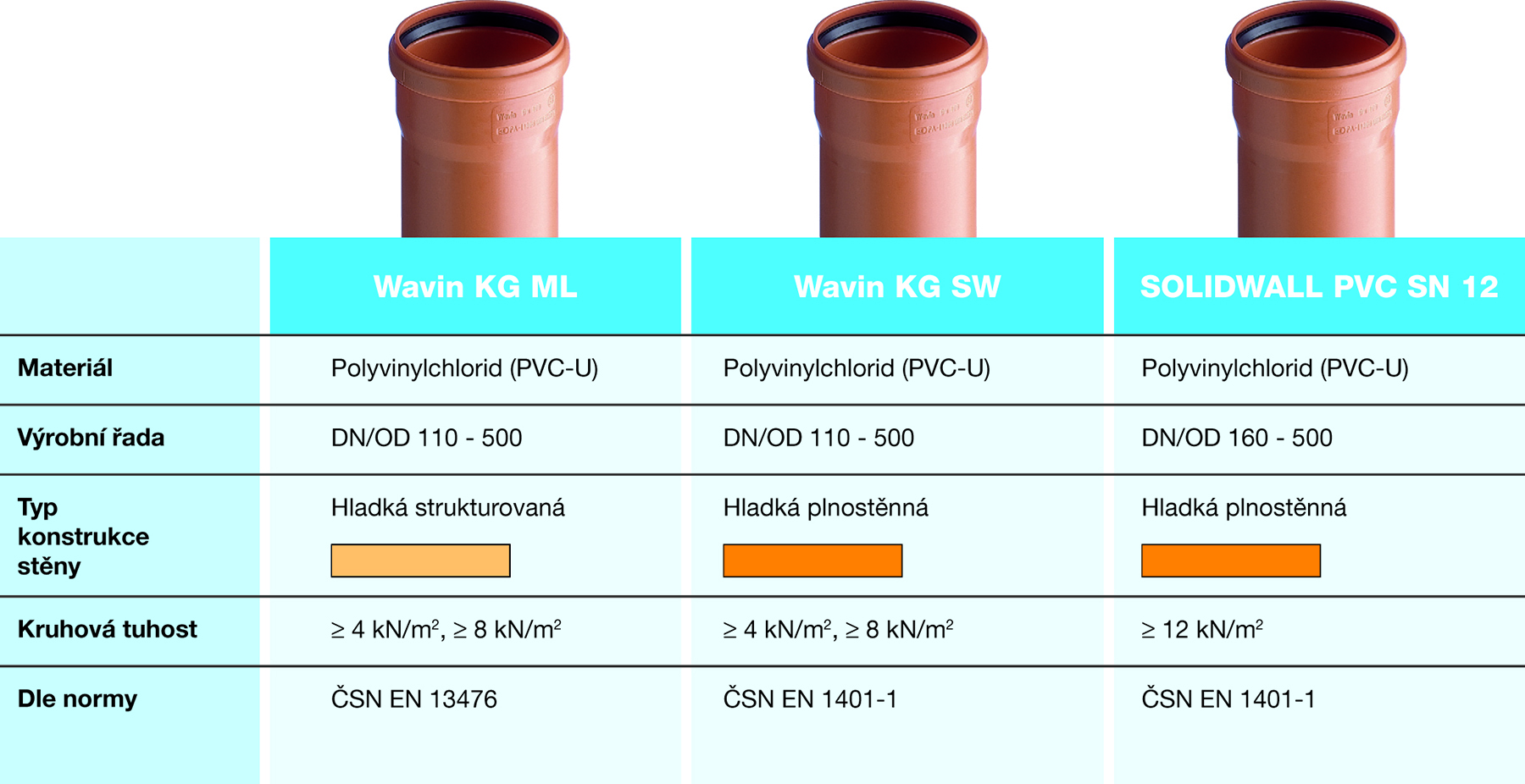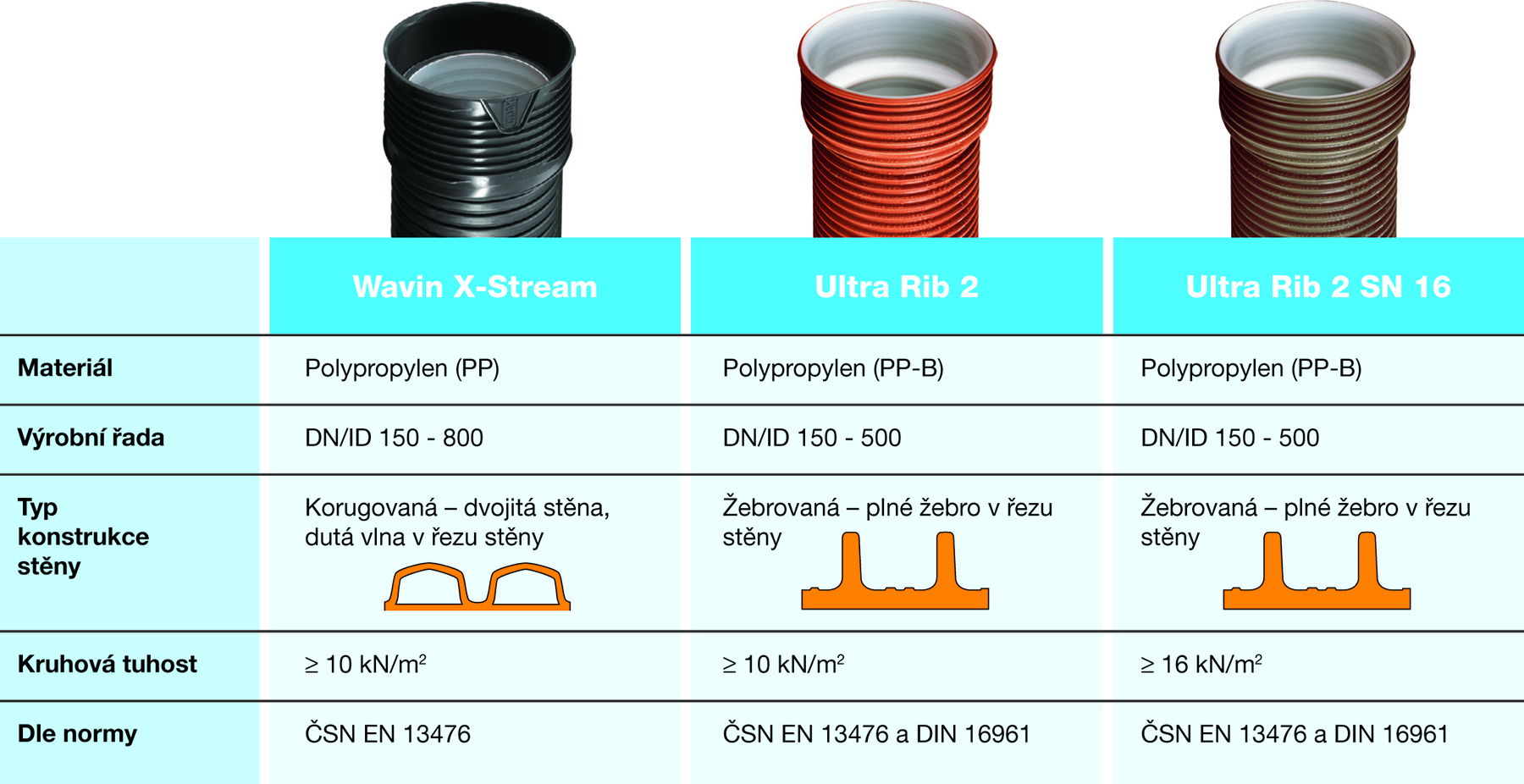 Veškeré potrubní systémy Wavin jsou navrženy tak, aby splňovaly vysoké požadavky na odvod dešťových a splaškových vod. Ať už si tedy zájemce vybere jako ten nejvhodnější materiál PVC, PP, nebo PE, dostane vždy prémiový kanalizační systém, který maximálně využívá výhod preferovaného materiálu.