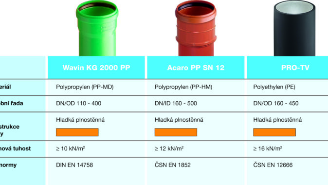 Letošní novinkou je plnostěnné hladké potrubí Wavin Acaro PP SN 12. Systém je vyroben z polypropylenu s vysokým pevnostním modulem (PP-HM). Vyznačuje se kruhovou tuhostí SN 12, vysokou houževnatostí a podélnou tuhostí, čímž je předurčen pro použití v náročných podmínkách či v místech s velkým statickým či dynamickým zatížením. Jedná se o systém trubek a tvarovek s mimořádně bezpečným vícebřitým těsněním odolným proti sklouznutí, které lze navíc snadno vyjmout za účelem čištění či výměny. Těsnění prokázalo testováním vysokou těsnost až 5 bar, a proto je možné systém využít i v místech zdrojů pitné vody. Díky velké tloušťce stěn a povrchu odolnému proti oděru je systém vhodný pro vysokotlaké čištění. Systém byl testován na tlak 200 bar. Kromě standardního značení potrubí na vnější straně nabízí systém Acaro PP SN 12 i značení na straně vnitřní, díky čemuž je možná snadná identifikace Acaro PP SN 12 i po instalaci potrubí. Wavin Acaro PP SN 12 se ideálně hodí všude tam, kde je bezpečnost kanalizačního potrubí hlavní prioritou. Jde tedy jak o centra měst, tak o poddolovaná území, chráněné krajinné oblasti a ochranná pásma vodních zdrojů. Své místo najde také v horských oblastech či v zavodněných lokalitách.