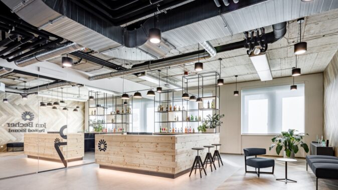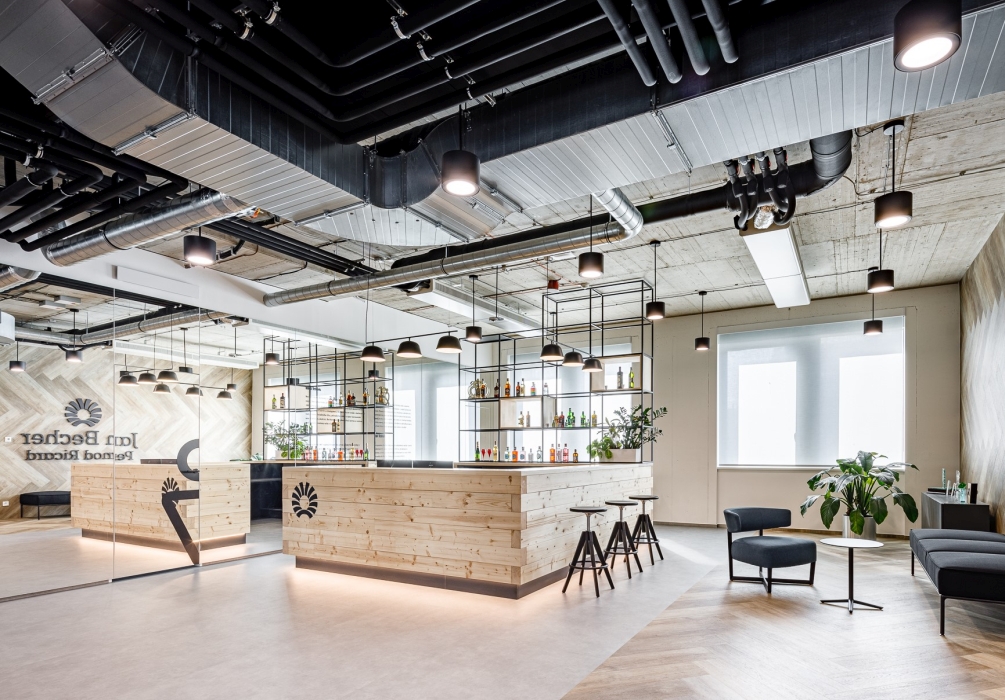 Původní zázemí Becherovky přestalo vyhovovat požadavkům firmy a zaměstnanci se proto přesunuli do nových prostor v Centru Stromovka v pražských Holešovicích. V kancelářích zaujmou nejen barevné zasedačky stylizované podle jednotlivých destilátů, ale také vlastní bar.