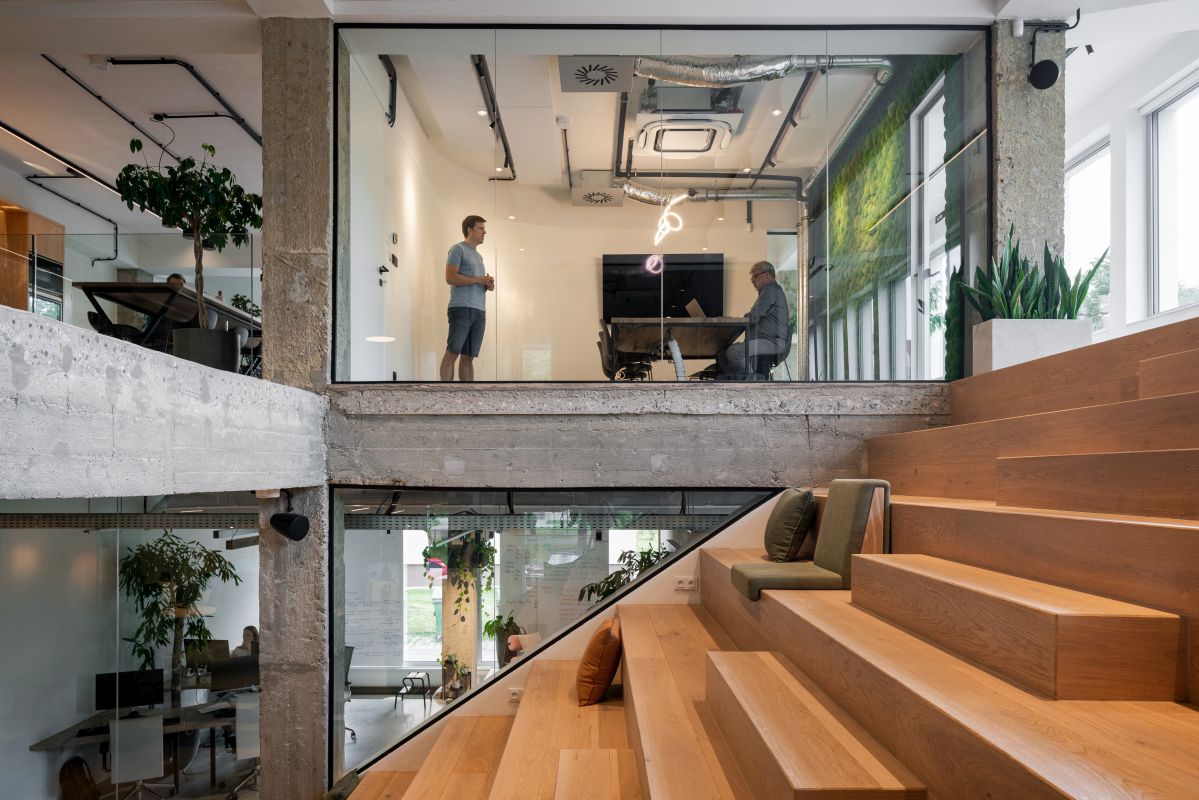 Cílem projektu bylo vytvořit nové kancelářské prostory IT společnosti Raynet, ve kterých bude vládnout hravost a svoboda. Kombinací velkorysých prostor, čistoty nových prvků a hrubosti původní konstrukce vznikly víceúčelové praktické prostory rozkládající se na dvou patrech stávající budovy. Budova prošla celkovým očištěním od nánosů historie, barevným zvýrazněním nově umístěného vstupu z Hlavní třídy a sjednocením oken i povrchu fasády světle šedou omítkou. Ta podtrhuje minimalistické pojetí návrhu a svým přístupem k rekonstrukci se stává novou paralelou k běžnému barevnému řešení zateplení okolních budov.