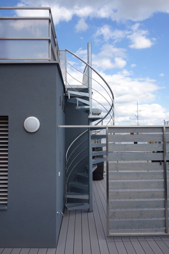 novodobým způsobem – její charakter podporují kovová zábradlí, vřetenové