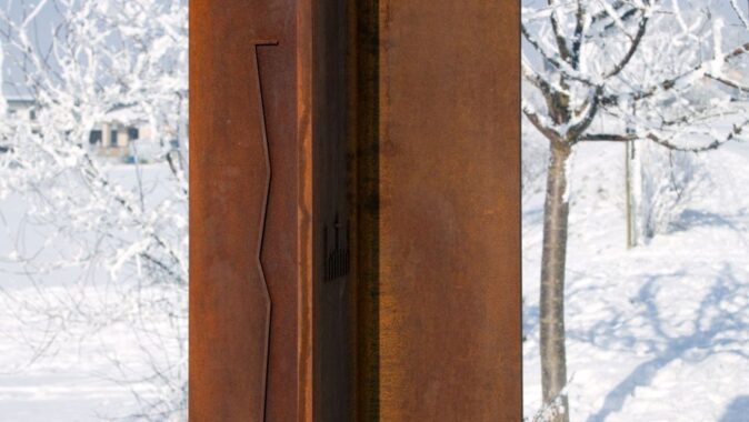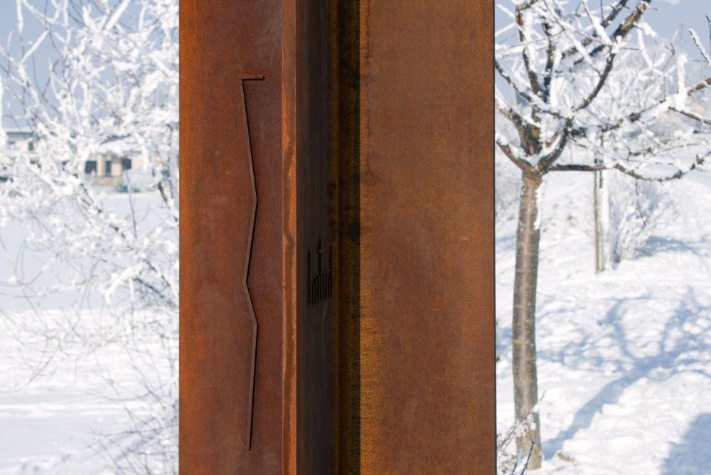 Záměr obce vybudovat tu drobný sakrální objekt, zaznamenaný v územním plánu prostým křížkem, získal konkrétní formu. Prolnutím dvou prostorových křížů vznikl jednoduchý objekt se čtyřmi výklenky. Kontext místa určil zasvěcení kaple čtyřem patronům. Zastoupeni jsou stylizovanými symboly orientovanými na všechny světové strany. Česká země: Svatý Václav – Svatováclavská koruna; letiště a vojsko: archanděl Michael – meč; pole a zemědělci: Svatý Isidor – rýč; cyklisté a výletníci: Svatý Kryštof – poutnická hůl.