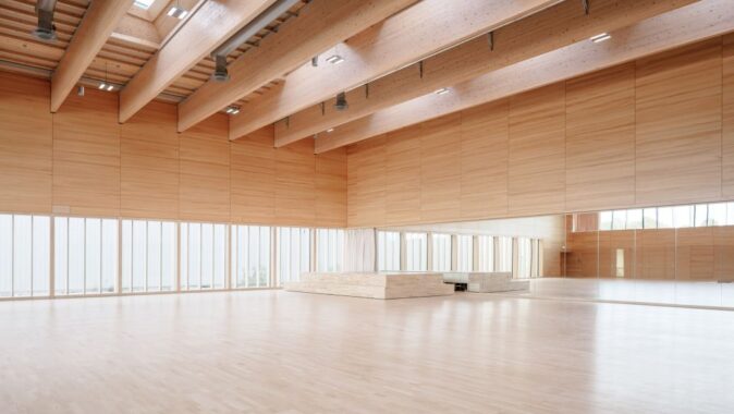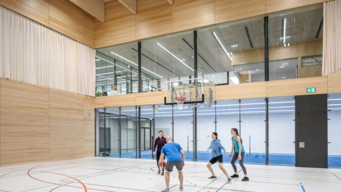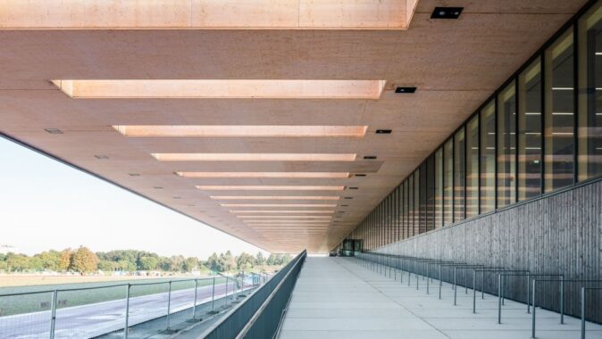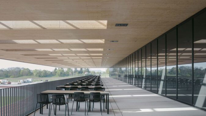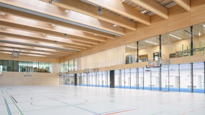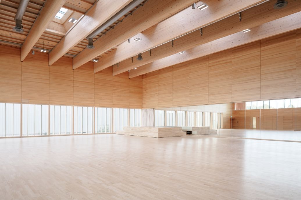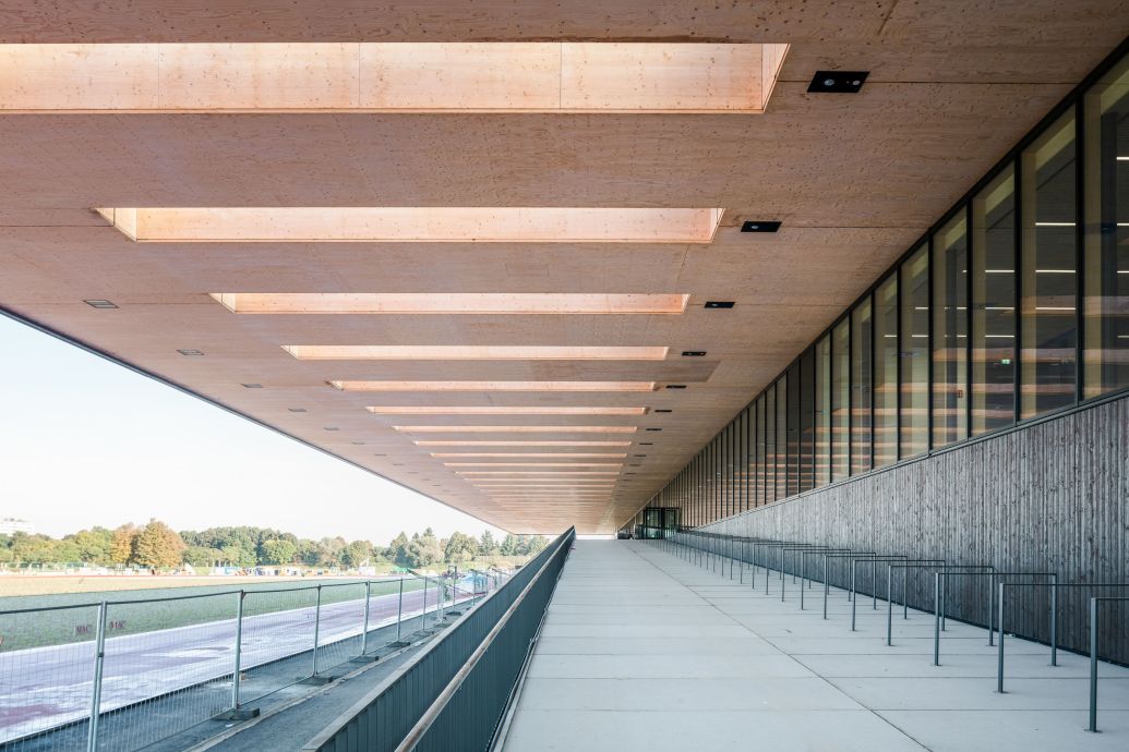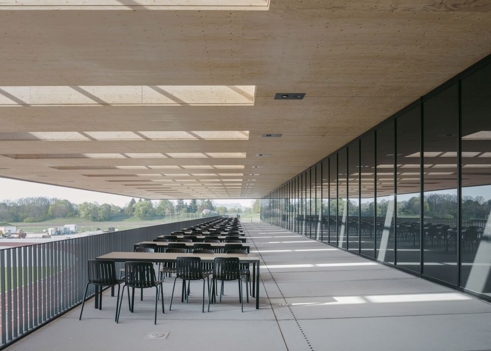 Sportovní haly, prostory instituce a kompletní střešní konstrukce jsou nicméně postaveny ze dřeva. „Volba tohoto materiálu umožnila vysoký stupeň prefabrikace, což zkrátilo čas potřebný k montáži, a dodalo také větší přesnost a vysokou účinnost. S vhodnou logistikou pro plánování, výrobu, dodávku a montáž byly halové části v provozu za pouhé dva měsíce,“ říká Dietrich. V Praze bude mluvit o dalších výhodách využití dřeva v architektuře.