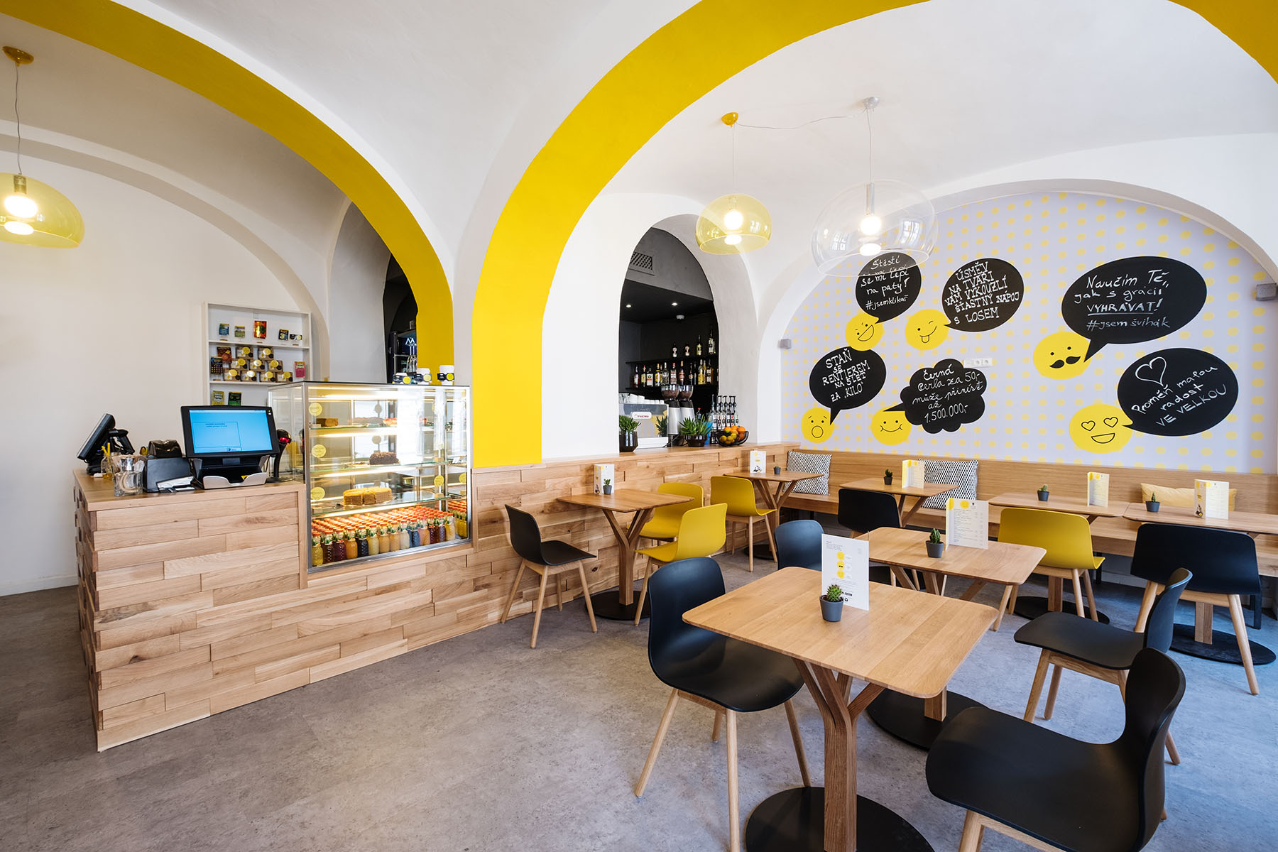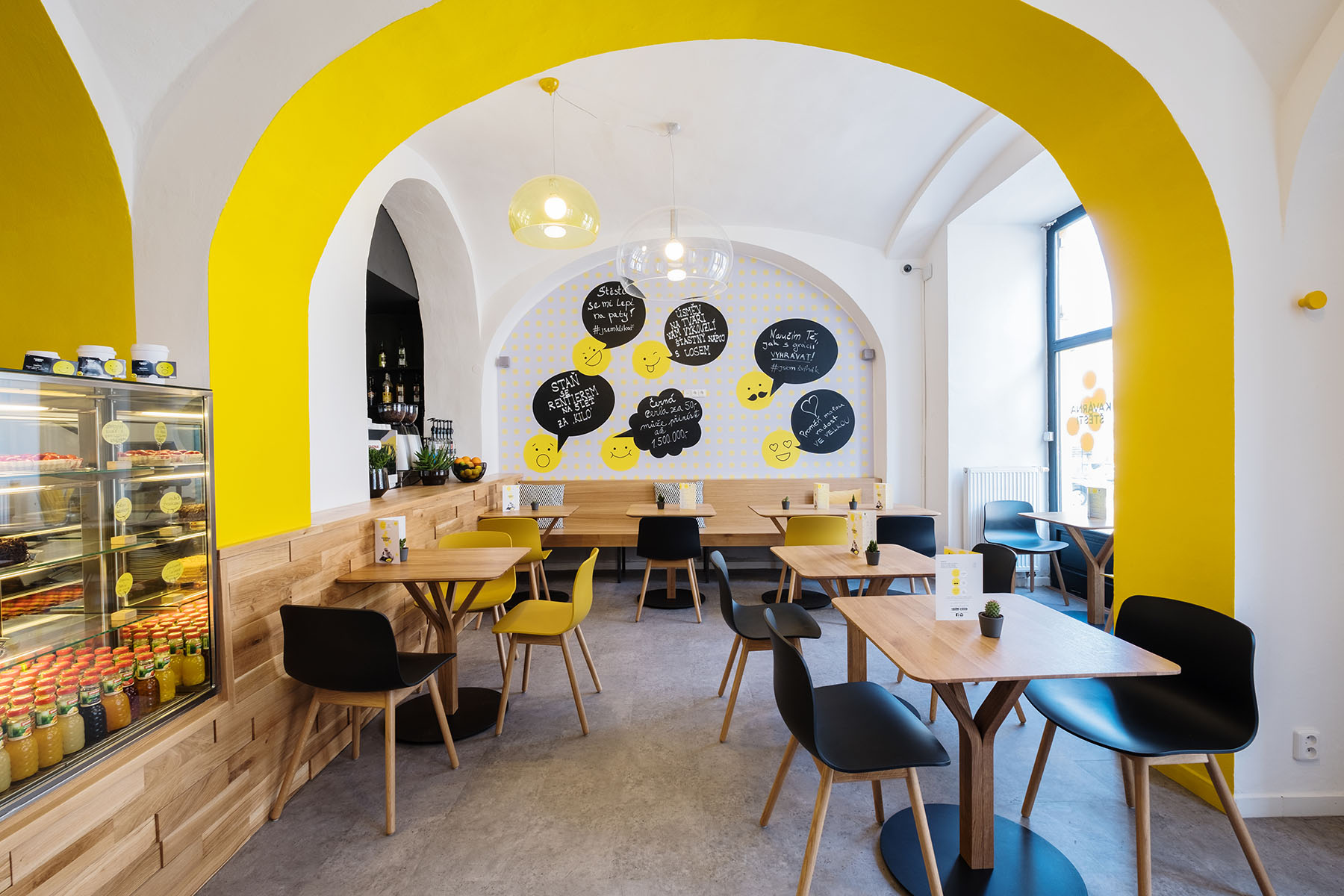 Společnost Sazka otevřela svoji kolínskou Kavárnu Štěstí a oblékla ji do jedinečného kabátu. O nový vzhled kavárny se postaraly architektka Martina Spurná a designérka Jana Murinová, které propojily dva zdánlivě protichůdné přístupy – barevnou designerskou tvořivost a černobílý architektonický minimalismus. Kavárny Štěstí jsou na českém trhu stále unikátní tím, že zákazníci starší osmnácti let si mohou dát Šťastný nápoj, ke kterému získají stírací los.