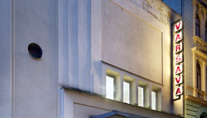 Vybudování Kinokavárny v kině Varšava je výsledkem občanské aktivity, která se snaží opravit zchátralou budovu posledního kamenného kina v Liberci a vytvořit v něm spolkový dům. Tuto krásnou stavbu navrhli v roce 1922 místní architekti Effenberger a Noppes ve stylu art-deco, investorem byl osvícený podnikatel Franz Sieber.