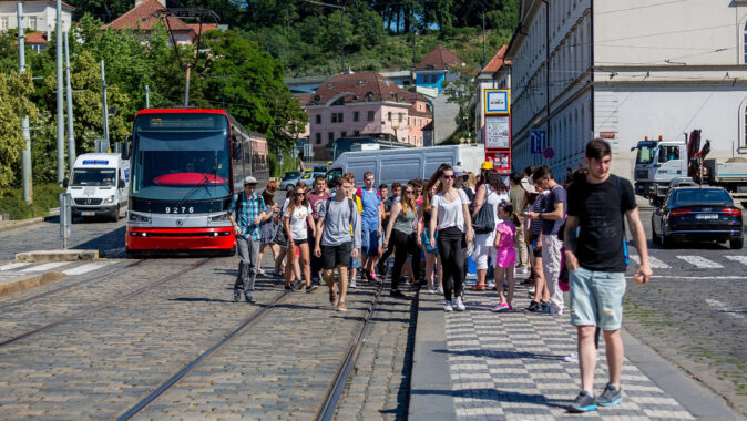 a to jak střetů chodců a automobilů, ale i automobilů a tramvají. Nepřehledný