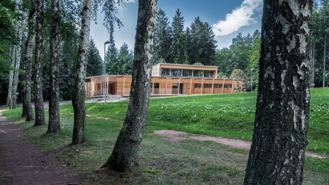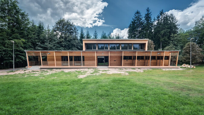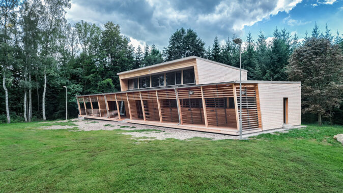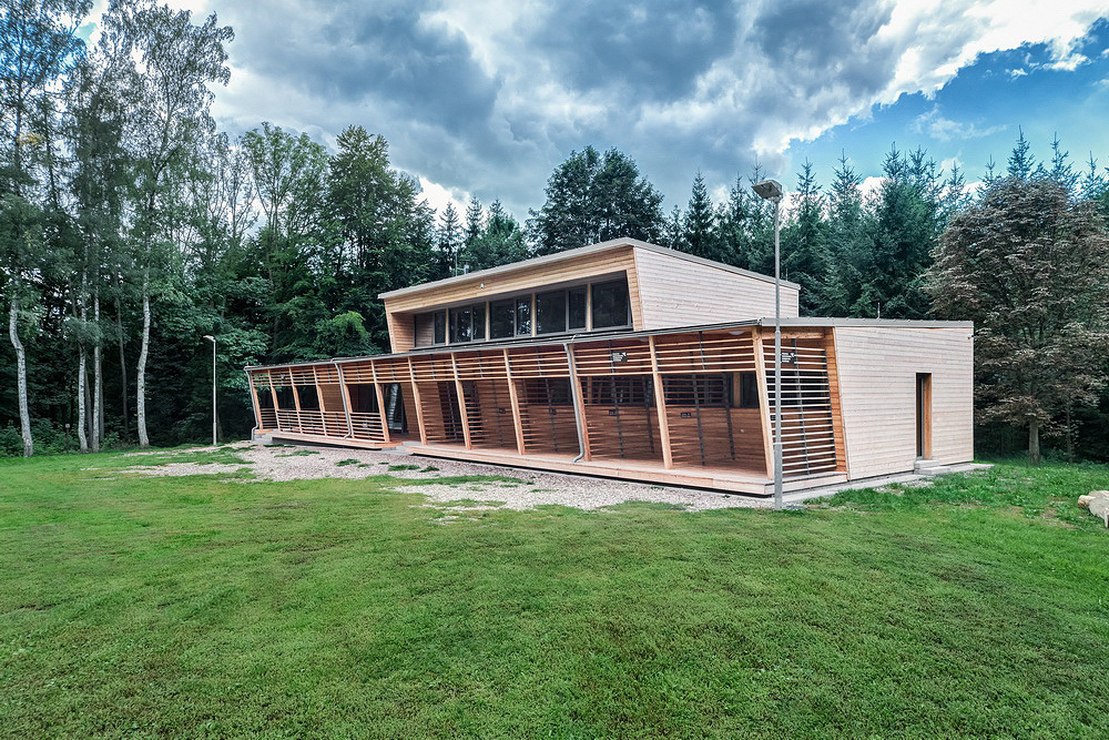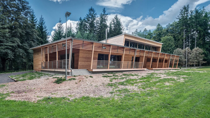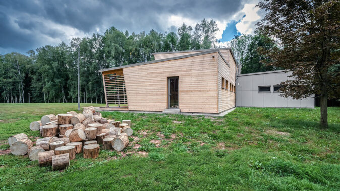 nedostačovaly svému účelu. Navrhli jsme ji jako celodřevěný dvoupodlažní objekt